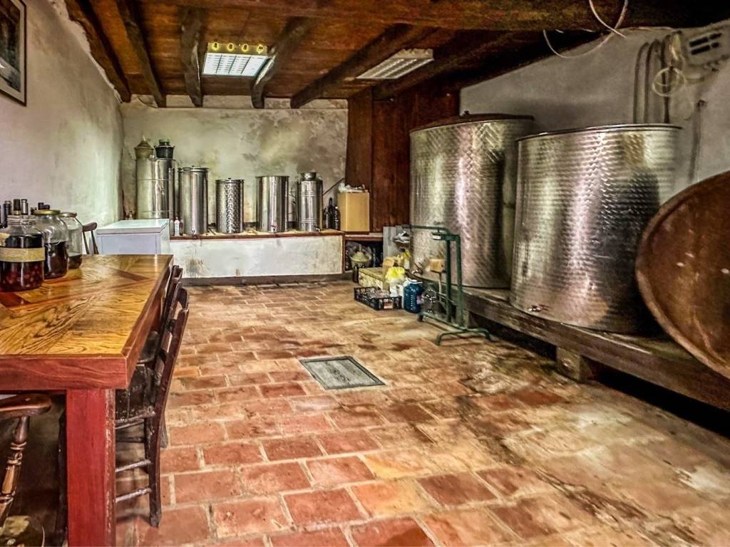 Glavna kuća (169 m²) sastoji se od dvije prostrane konobe u prizemlju - savršene za vinski podrum, konobu ili prostor za degustacije. Na katu su kuhinja, dnevni boravak s blagovaonicom, jedna spavaća soba i dodatne tri sobe na gornjoj etaži, što omogućuje smještaj obitelji i gostiju. Gospodarske zgrade uključuju staru radionicu s potkrovljem i tradicionalnu prostoriju s istarskim ognjišćem, što daje dodatnu vrijednost i mogućnost za razvoj turističkog sadržaja.