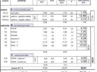 Prodaje se stan (zatvorenog prostora 56,80m2) novije gradnje u "Vilama Gundulić" koji se sastoji od ulaznog hodnika, kuhinje s blagovaonicom, dnevnog boravka s izlazom na natkrivenu terasu površine 8,06m2(obračunski 4,03m2), dvije spavaće sobe, jedna soba ima izlaz na nenatkrivenu terasu površine 8,34m2 (obračunski 2,08m2) te kupaonice.
