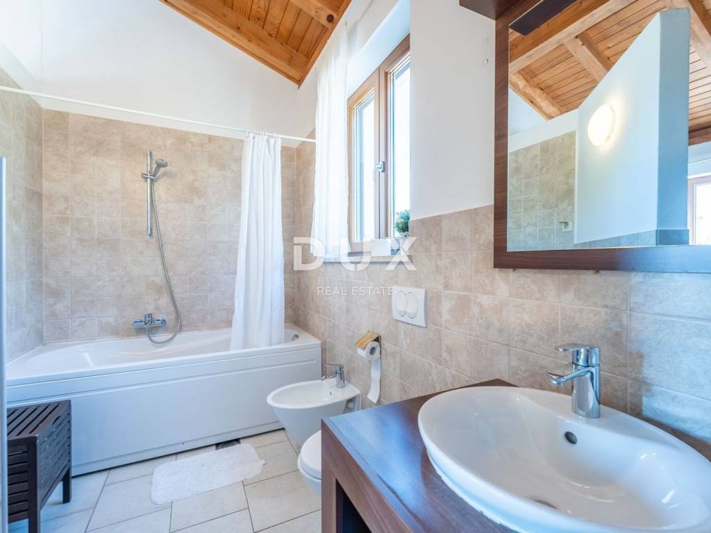 ISTRIEN, ŽMINJ – Exklusive istrische Villa – Komfort, Ruhe und absolute Privatsphäre Wenn alle Wege in Europa nach Rom führen, dann führen alle Wege in Istrien nach Žminj – dem Herzen Istriens. Seit der Antike ist Žminj ein wichtiger Verkehrsknotenpunkt, der die gesamte istrische Halbinsel verband. Heute ist es ein idealer Ort für Naturliebhaber, Wanderer und Radfahrer. Bei Spaziergängen durch Žminj und seine malerische Umgebung stoßen Sie auf zahlreiche traditionelle Steinhäuser und Kažuns – jedes von ihnen hat seine eigene einzigartige Geschichte. Jahrhundertealte istrische Steinhäuser wurden in charmante Agrotourismus-Einrichtungen umgewandelt, in denen Sie authentische istrische Küche probieren können. Besonders hervorzuheben ist Bartulja, das größte Volksfest, das traditionell am letzten Samstag im August stattfindet und auf das Istrier und ihre Gäste jedes Jahr gespannt warten. Unweit des Zentrums dieser malerischen Stadt befindet sich eine wahre istrische Schönheit – eine Villa, die auf den ersten Blick mit ihrem Aussehen und Inhalt verzaubert. Mit insgesamt 398 m² Wohnfläche strahlt diese Villa die Eleganz eines ehemaligen Schlosses aus, gekonnt integriert in einen modernen Lebensstil. Die Villa erstreckt sich über zwei Etagen und ein Untergeschoss. Im Erdgeschoss befinden sich ein geräumiges Wohnzimmer mit Esszimmer und Küche, ein zusätzliches WC und zwei Schlafzimmer mit eigenen Bädern. Im ersten Stock befinden sich zwei weitere Schlafzimmer, jeweils mit eigenem Bad, und eine große überdachte Terrasse – der perfekte Ort zum Entspannen beim Vogelgezwitscher und mit Blick auf den Wald. Jedes Badezimmer dieser Villa ist mit einer Badewanne ausgestattet, was das Gefühl von Luxus und Komfort zusätzlich verstärkt. Im Untergeschoss sind bereits Installationen für ein zukünftiges Wellness-Center installiert, sodass der Käufer die Möglichkeit hat, die Ausstattung und Dekoration nach seinen Wünschen zu wählen. Das Interieur ist modern und mit hochwertigen Möbeln ausgestattet, wobei sorgfältig ausgewählte Details dem Raum einen besonderen Charme verleihen. Die gemütliche Atmosphäre wird durch den Kamin im geräumigen Wohnzimmer zusätzlich unterstrichen. Die Villa ist technisch hervorragend ausgestattet – sie verfügt über eine Fußbodenheizung mittels Wärmepumpe, eine Klimaanlage und Sonnenkollektoren. Auf dem beeindruckenden, 2.253 m² großen Landschaftsgarten befinden sich: – ein großer Swimmingpool für Erwachsene – ein flacher Pool für Kinder – eine Sonnenterrasse mit Liegestühlen – eine überdachte Terrasse mit hochwertigen Gartenmöbeln – ein Außengrill – ideal für istrische gastronomische Genüsse – vier Parkplätze. Das gesamte Grundstück ist eingezäunt und gewährleistet absolute Privatsphäre, Ruhe und Sicherheit – besonders wichtig für Familien mit Kindern, die auf dem gesamten Grundstück frei spielen können. Von der gesamten Grundstücksfläche liegen 1.389 m² in der Bauzone und ermöglichen den Bau zusätzlicher Einrichtungen (z. B. Nebengebäude, Garagen, Swimmingpool usw.), während die restlichen 864 m² in der Landwirtschaftszone die Möglichkeit bieten, Sport- und Freizeiteinrichtungen anzuordnen – wie etwa einen Tennisplatz, einen Kinderspielplatz, Minigolf, ein Fitnessstudio im Freien oder Platz für andere Aktivitäten im Freien. Die Villa liegt inmitten wunderschöner Wälder und in unmittelbarer Nähe gibt es zahlreiche Wander- und Radwege, was diese Immobilie zum idealen Ort für die Entspannung von Körper und Geist macht – ein wahres kleines Paradies im Herzen Istriens. Sehr geehrte Kunden, die Agenturprovision wird gemäß den Allgemeinen Geschäftsbedingungen www.dux-nekretnine.hr/opci-uvjeti-poslovanja berechnet. ID CODE: 42416 Tina Širol Agent s licencom Mob: +385 95 825 4533 Tel: +385 99 640 8438 E-mail: tina@dux-istra.com www.dux-istra.com