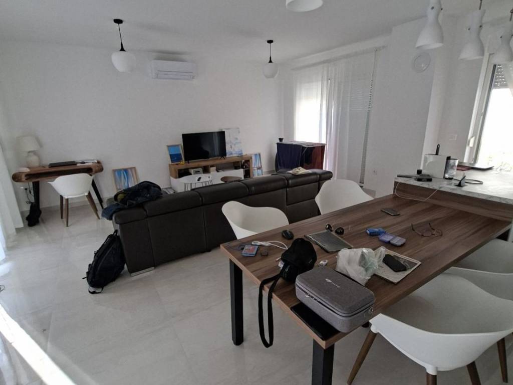 Pr. Open space prostor kuhinja blagavaonica dnevni boravak i toalet. Iz djela hidnika izlazi su u garažu,a na drugoj strani je izlaz na terasu i vrt kuće odakle se pruža otvoren pogled na more taj dio predviđen je sa sunčanje i vrt.