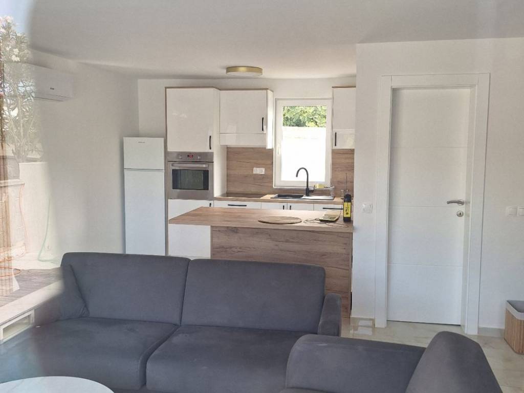 Kuća se sastojiod kuhinja dnevni boravak, dvije spavaće sobe, kupatilo i terasa ukupne stambene površine 65,36m² izgrađena na 200m² okućnice i bazena.