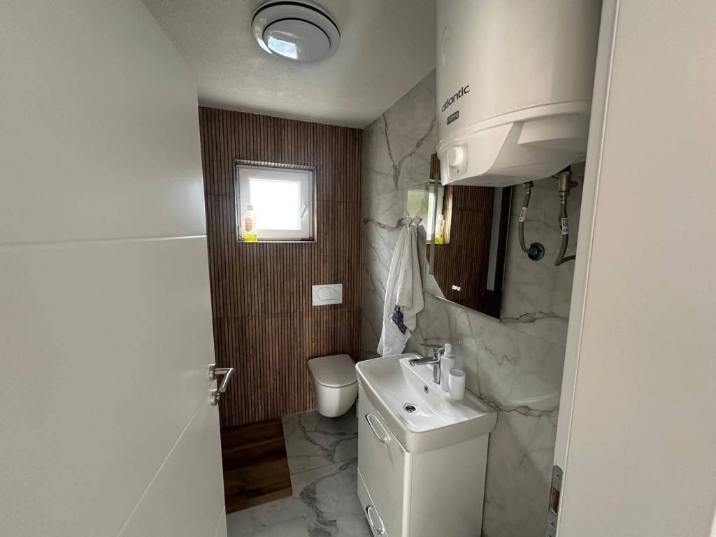 Kuća je klimatizirana, ugrađivani su kvalitetni matrijali PVC stolarija i sanitarije kao što je Geberit školjka.