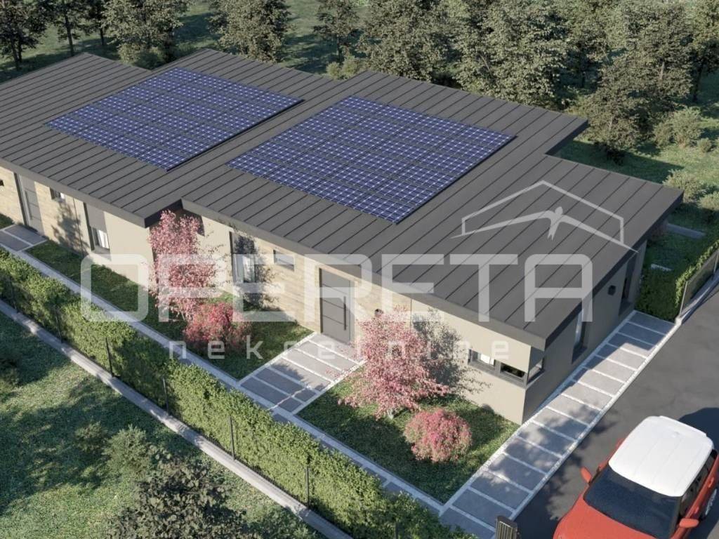 Prodaje se nova niskoenergetska kuća na mirnoj obiteljskoj lokaciji, udaljena samo 2 minute vožnje od izlaza na autoput, te 3 km od kolodvora.