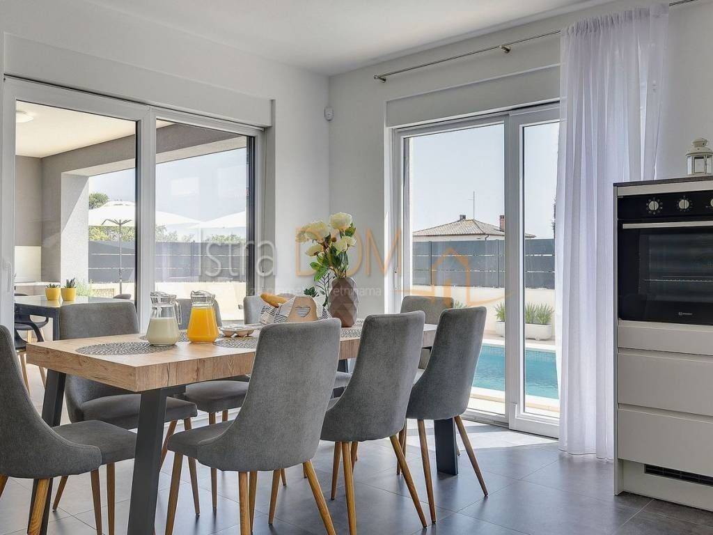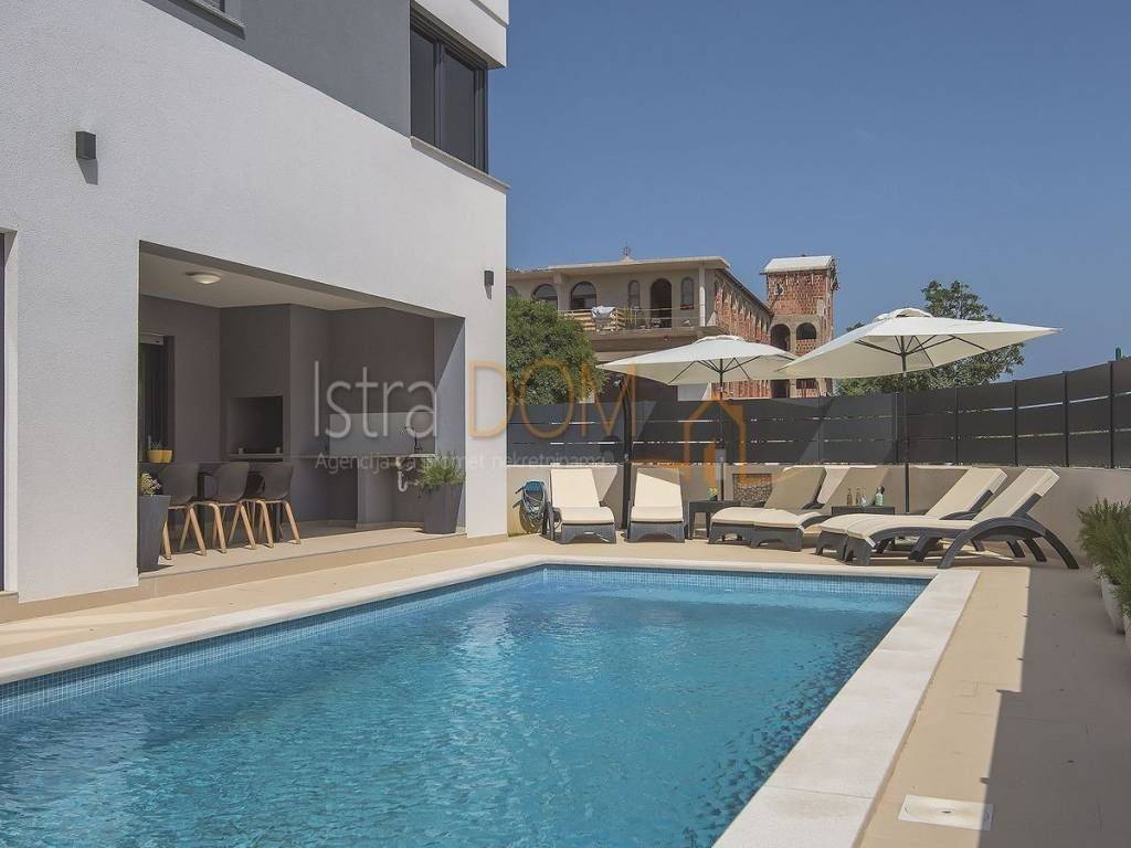 Wir verkaufen eine wunderschöne zweistöckige Villa mit Swimmingpool in der Nähe von Pula. Diese moderne Villa bietet 172 m² Wohnfläche auf einem 388 m² großen Grundstück, ideal für eine Familie oder als Mietinvestition.