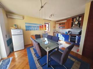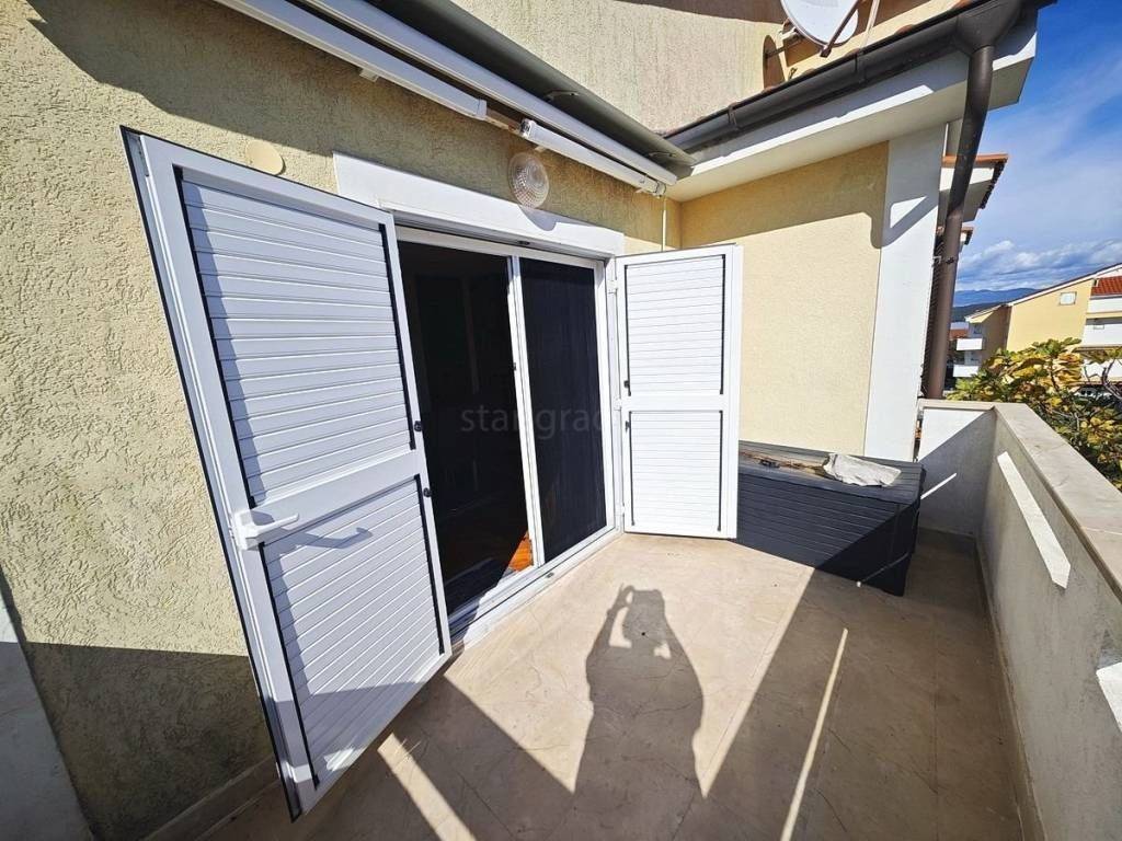 Es handelt sich um eine zweistöckige Wohnung mit einer Innentreppe und einem Eingangsbereich im unteren Geschoss. Die Wohnung befindet sich in einem qualitativ gut gebauten Gebäude im zweiten Stock und Dachgeschoss und hat eine Gesamtfläche von 108 m². Sie umfasst einen Eingangsbereich, ein Wohnzimmer mit Küche und Essbereich, ein Badezimmer und eine überdachte Terrasse im zweiten Stock, während sich im Dachgeschoss drei Schlafzimmer und ein weiteres Badezimmer befinden. Das Interieur ist sehr gepflegt, vollständig mit hochwertigen Möbeln eingerichtet und mit allen notwendigen technischen Geräten ausgestattet, was eine sofortige Nutzung oder touristische Nutzung ermöglicht.