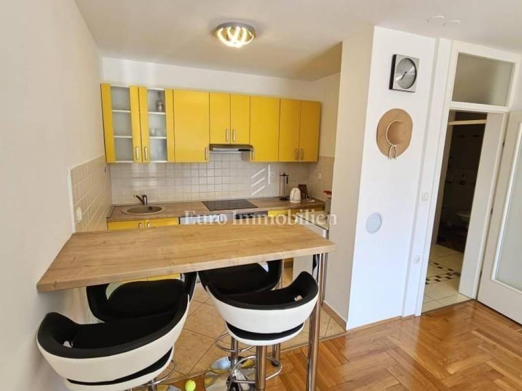 Die Wohnung besteht aus Schlafzimmer, Bad, Abstellraum sowie offener Küche mit Wohnzimmer; besonders hervorzuheben ist die große Loggia. Voll möbliert und ausgestattet, wird sie im aktuellen Zustand verkauft.