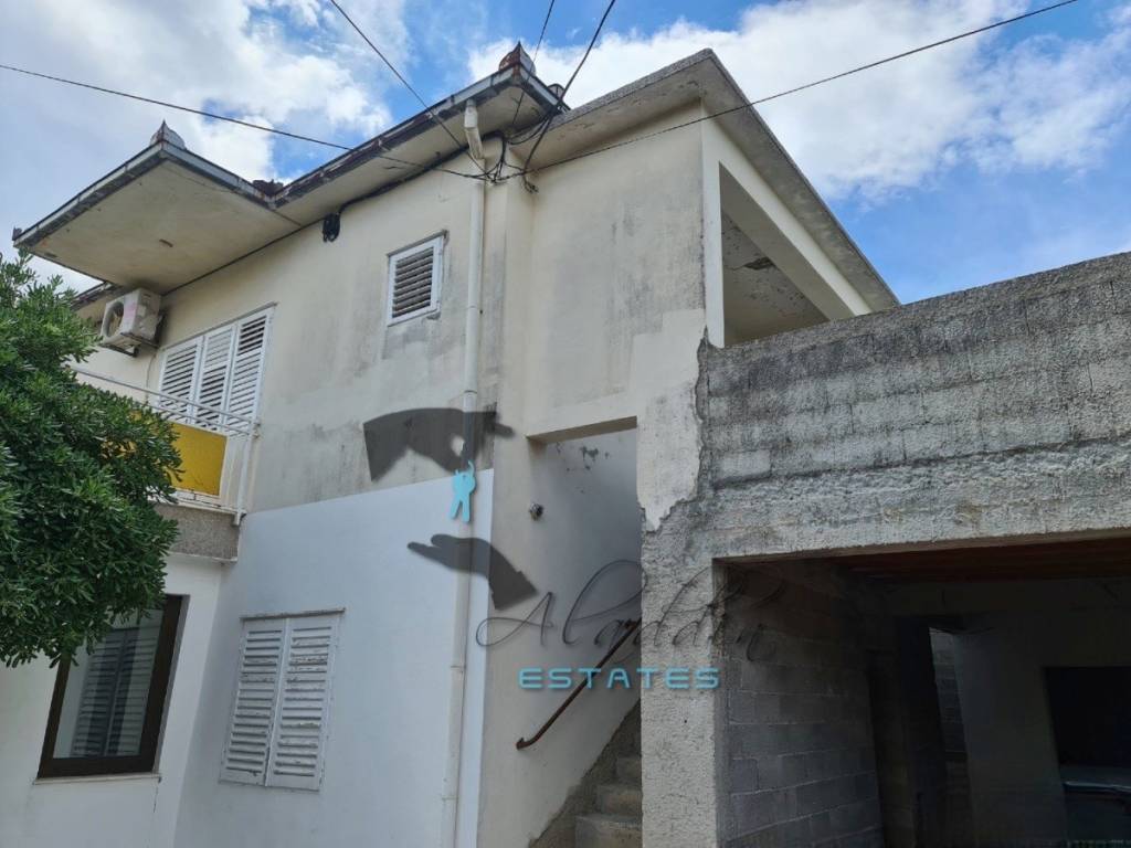 Dvoetažna dvojna kuća u srcu Trogira s 238 kvadrata stambene površine, uz dodatnih 17 kvadrata garažnog prostora i konobu od 14 kvadrata. Sastoji se od dva vrlo prostrana stana sličnih tlocrta s dvije i tri spavaće sobe, dnevnog boravka, blagovaonice i kuhinje kao jedne cjeline i po jedne kupaonice i WC-a. Svaki stan ima svoj zaseban ulaz kao i svoj natkriveni balkon. Prizemlje ima i svoju verandu, dok prvi kat i dodatni natkriveni balkon. Pokraj zgrade je i garaža s jednim parkirnim mjestom, konoba te izdašni vrt od oko 116 kvadrata.