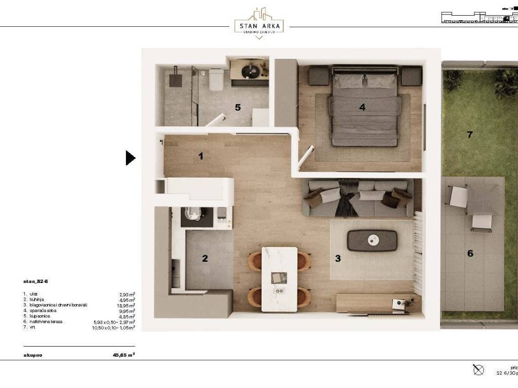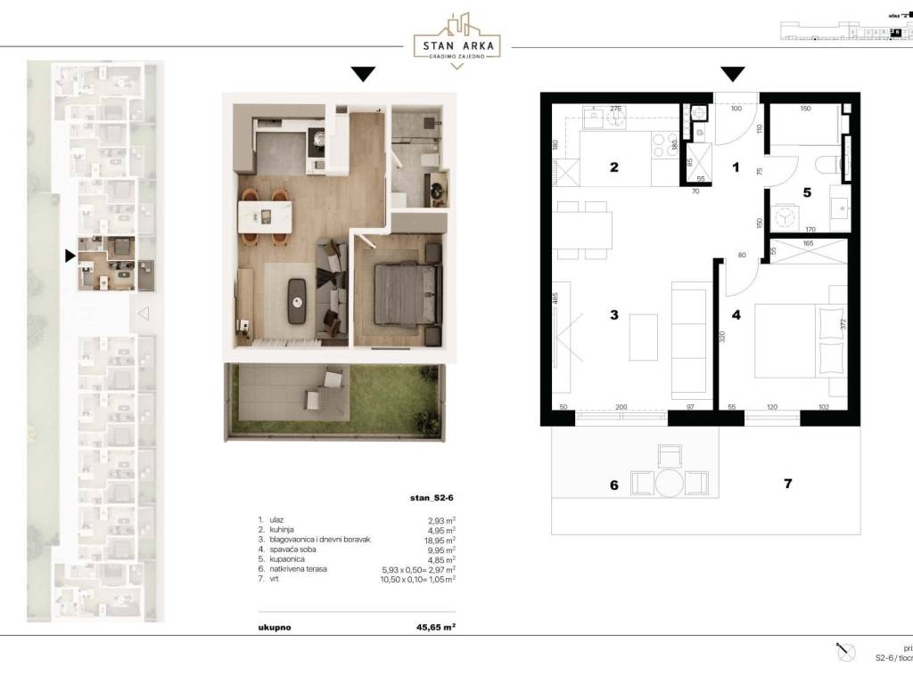 STAN S2-6 - 44,60 m2, 2-sobni, prizemlje (ULAZ 2)