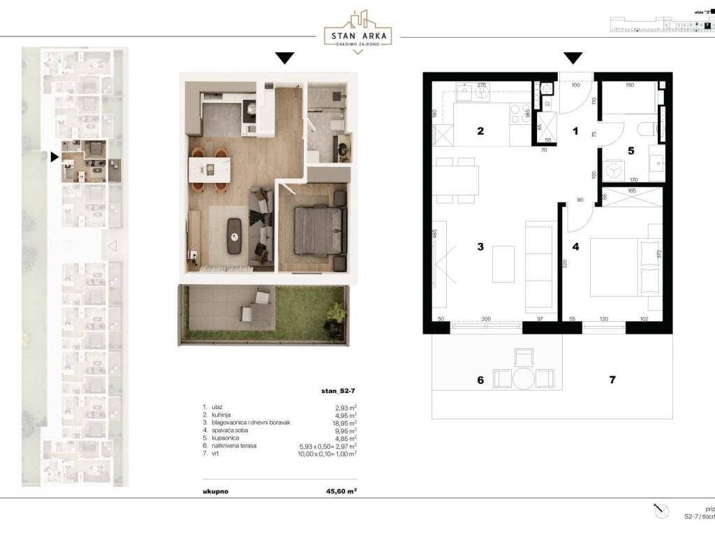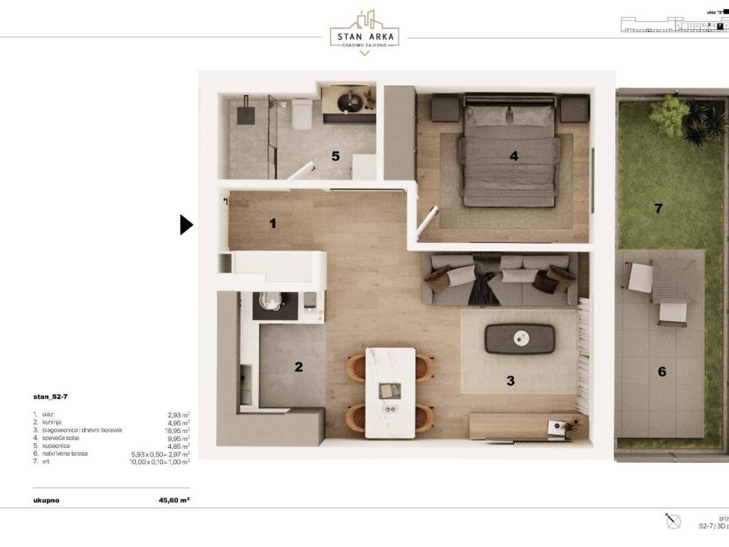 STAN S2-7 - 44,60 m2, 2-sobni, nalazi se u prizemlju (ULAZ 2)