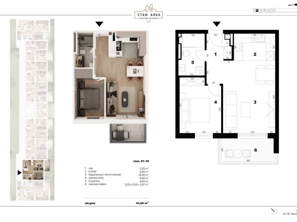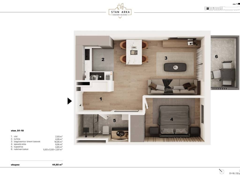 STAN S1-18-44,60 m2, 2-sobni, nalazi se na drugom katu (ULAZ 1)