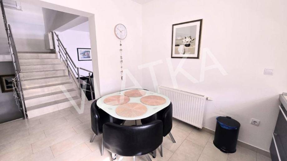 Zweistöckige 4-Zimmer-Wohnung: Garage 40 m2, Keller, Toilette, Waschküche, Eingangshalle zum Haus, Gästetoilette, Küche, Speisekammer, Wohnzimmer, Esszimmer, Terrasse 54 m2 mit wunderschönem Blick auf die Stadt.