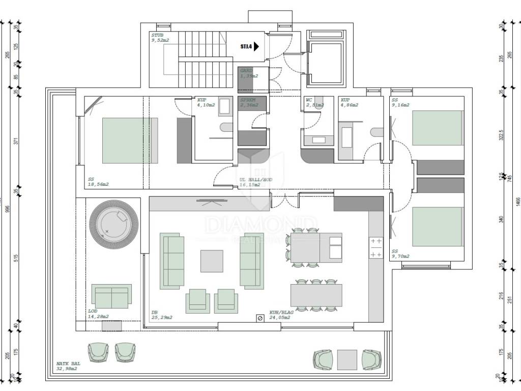 In einem ruhigen Teil von Jadranovo, in einem modernen Neubau, dessen Fertigstellung für das Frühjahr 2026 geplant ist, befindet sich dieses exklusive Penthouse, das die gesamte zweite Etage eines Hauses mit nur vier Wohneinheiten einnimmt.