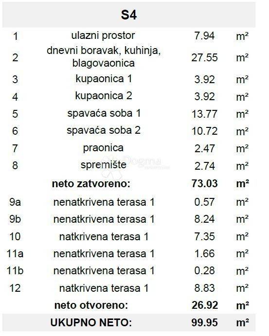 NEUBAU – MODERNE WOHNUNG MIT TERRASSEN UND MEERBLICK, WENIGER ALS 150 m VOM STRAND – OKRUG GORNJI Zum Verkauf steht eine moderne Wohnung in einem hochwertigen Neubau in Okrug Gornji, nur weniger als 150 Meter vom Meer und Strand entfernt. Das Gebäude befindet sich in der Endphase der Bauarbeiten, und einige Bewohner sind bereits eingezogen – ein Beweis für die hohe Bauqualität und das angenehme Wohnumfeld. Die Wohnung besteht aus: Eingangsbereich – 7,94 m² Wohnzimmer mit Küche und Essbereich – 27,55 m² Badezimmer 1 – 3,92 m² Badezimmer 2 – 3,92 m² Schlafzimmer 1 – 13,77 m² Schlafzimmer 2 – 10,72 m² Waschraum – 2,47 m² Abstellraum – 2,74 m² Geschlossene Fläche: 73,03 m² Offene und überdachte Terrassen: 26,92 m² Gesamtfläche: 99,95 m² Die Wohnung ist nach Norden–Süden ausgerichtet und bietet den ganzen Tag über viel natürliches Licht und gute Belüftung. Die großzügigen Terrassen mit herrlichem Meerblick laden zum Entspannen an warmen Mittelmeerabenden ein. Das Gebäude wurde nach höchsten Standards errichtet: Tiefgarage mit Parkplätzen und privaten Abstellräumen (mit eigenem Stromanschluss) zwei Treppenhäuser, jeweils mit Aufzug (Ostseite mit 2, Westseite mit 3 Wohnungen pro Etage) Sicherheits-, Feuer- und Rauchschutztüren Video-Gegensprechanlage mit Karten- oder Fernöffnung Fußbodenheizung in Wohnzimmer und Bädern Dreifachverglasung, elektrische Rollläden, Insektenschutz klimatisierte Räume und Wohnbereiche Glasfaseranschluss für schnelles Internet hervorragende Wärme- und Schalldämmung Das Gebäude liegt an einer asphaltierten Zufahrtsstraße (8–9 m breit) mit dauerhaft freiem Meerblick, da alle umliegenden Gebäude bereits fertiggestellt und höhenmäßig definiert sind. Lagevorteile: weniger als 150 m vom Meer und Strand ruhige und prestigeträchtige Umgebung mit viel Grün freier Blick auf das Meer und die Inseln Nähe zu Restaurants, Cafés, Geschäften, Sportanlagen und Marina ausgezeichnete Verkehrsanbindung: Trogir 4 km, Flughafen Split 5 km, Split 28 km Diese Immobilie ist ideal für dauerhaftes Wohnen, als Ferienwohnung oder als lohnende Investition mit hohem Renditepotenzial. ID CODE: ST4287 Nino Matas Asistent u posredovanju Mob: 097/681-3903 Tel: +385 21 293 201 E-mail: nino.matas@dogma-nekretnine.com www.dogma-dalmacija.com