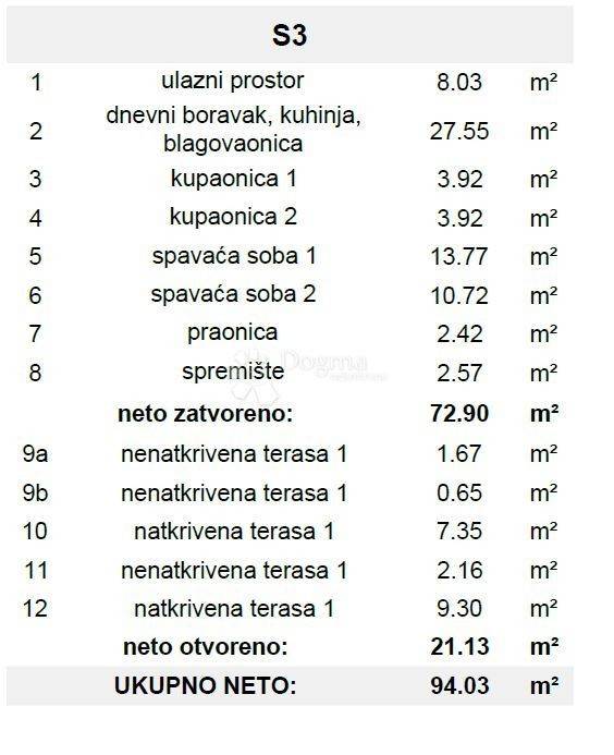NEUBAU – MODERNE WOHNUNG MIT TERRASSEN, WENIGER ALS 150 m VOM STRAND – OKRUG GORNJI Zum Verkauf steht eine moderne Wohnung in einem hochwertigen Neubau in Okrug Gornji, nur weniger als 150 Meter vom Meer und Strand entfernt. Das Gebäude befindet sich in der Endphase der Bauarbeiten, und einige Bewohner sind bereits eingezogen – ein Beweis für die hohe Bauqualität und das angenehme Wohnumfeld. Die Wohnung besteht aus: Eingangsbereich – 8,03 m² Wohnzimmer mit Küche und Essbereich – 27,55 m² Badezimmer 1 – 3,92 m² Badezimmer 2 – 3,92 m² Schlafzimmer 1 – 13,77 m² Schlafzimmer 2 – 10,72 m² Waschraum – 2,42 m² Abstellraum – 2,57 m² Geschlossene Fläche: 72,90 m² Offene und überdachte Terrassen: 21,13 m² Gesamtfläche: 94,03 m² Die Wohnung ist nach Norden–Süden ausgerichtet und bietet den ganzen Tag über viel natürliches Licht und gute Belüftung. Die großzügigen Terrassen mit herrlichem Meerblick laden zum Entspannen an warmen Mittelmeerabenden ein. Das Gebäude wurde nach höchsten Standards errichtet: Tiefgarage mit Parkplätzen und privaten Abstellräumen (mit eigenem Stromanschluss) zwei Treppenhäuser, jeweils mit Aufzug (Ostseite mit 2, Westseite mit 3 Wohnungen pro Etage) Sicherheits-, Feuer- und Rauchschutztüren Video-Gegensprechanlage mit Karten- oder Fernöffnung Fußbodenheizung in Wohnzimmer und Bädern Dreifachverglasung, elektrische Rollläden, Insektenschutz klimatisierte Räume und Wohnbereiche Glasfaseranschluss für schnelles Internet hervorragende Wärme- und Schalldämmung Das Gebäude liegt an einer asphaltierten Zufahrtsstraße (8–9 m breit) mit dauerhaft freiem Meerblick, da alle umliegenden Gebäude bereits fertiggestellt und höhenmäßig definiert sind. Lagevorteile: weniger als 150 m vom Meer und Strand ruhige und prestigeträchtige Umgebung mit viel Grün freier Blick auf das Meer und die Inseln Nähe zu Restaurants, Cafés, Geschäften, Sportanlagen und Marina ausgezeichnete Verkehrsanbindung: Trogir 4 km, Flughafen Split 5 km, Split 28 km Diese Immobilie ist ideal für dauerhaftes Wohnen, als Ferienwohnung oder als lohnende Investition mit hohem Renditepotenzial. ID CODE: ST4286 Nino Matas Asistent u posredovanju Mob: 097/681-3903 Tel: +385 21 293 201 E-mail: nino.matas@dogma-nekretnine.com www.dogma-dalmacija.com