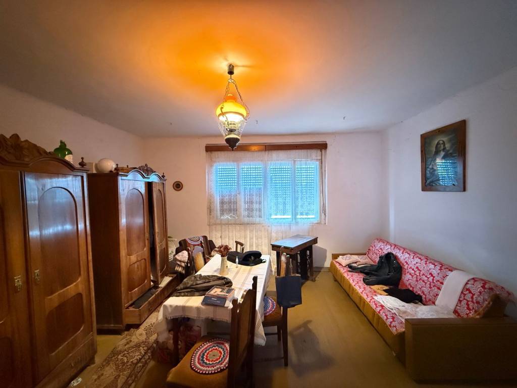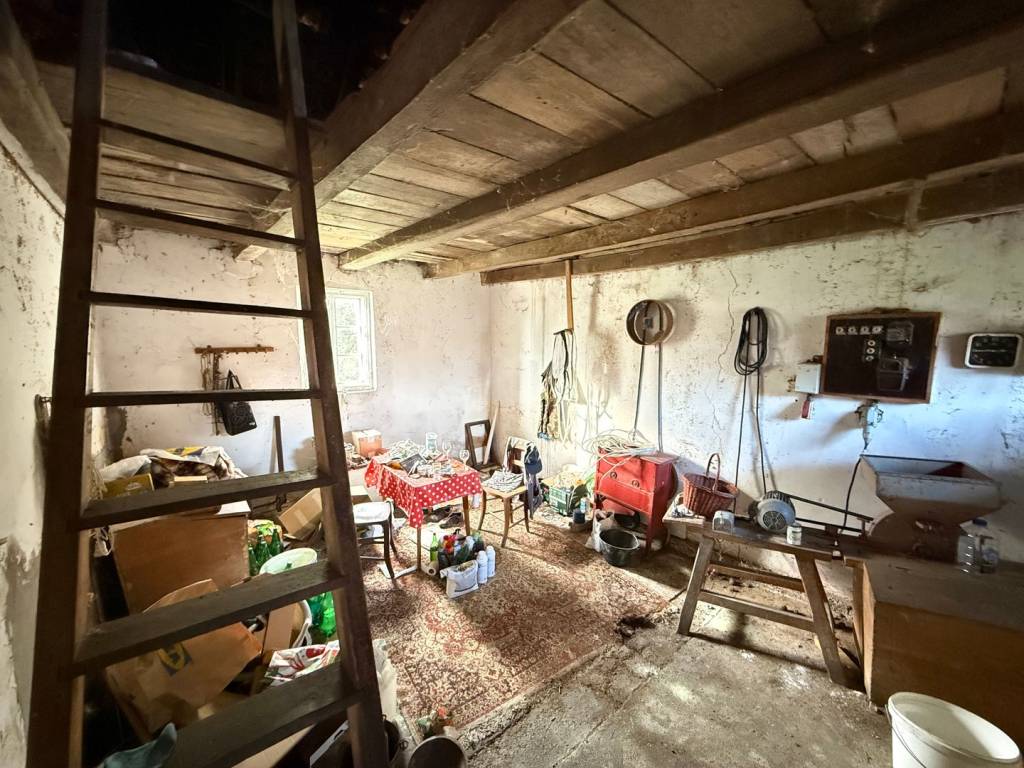 Das Haus besteht aus zwei Zimmern, einer Küche, einem Flur, einem Keller, einem Lagerraum, einem Badezimmer und einer Speisekammer. Im Hof befinden sich ein Stall, ein Pferdestall, zwei Garagen, zwei Maisbehälter, zwei Holzschuppen, ein Schweinestall, ein Obstgarten und ein Garten.