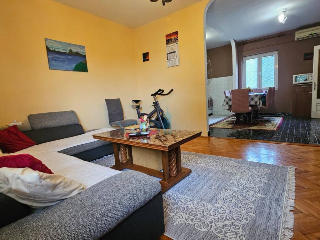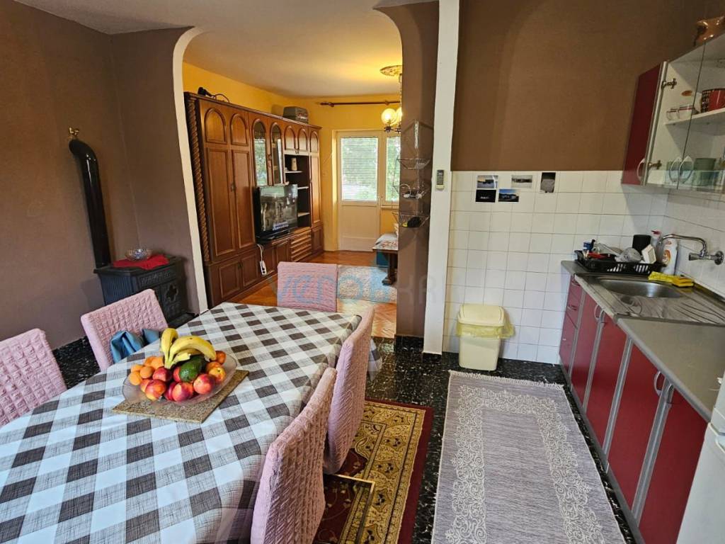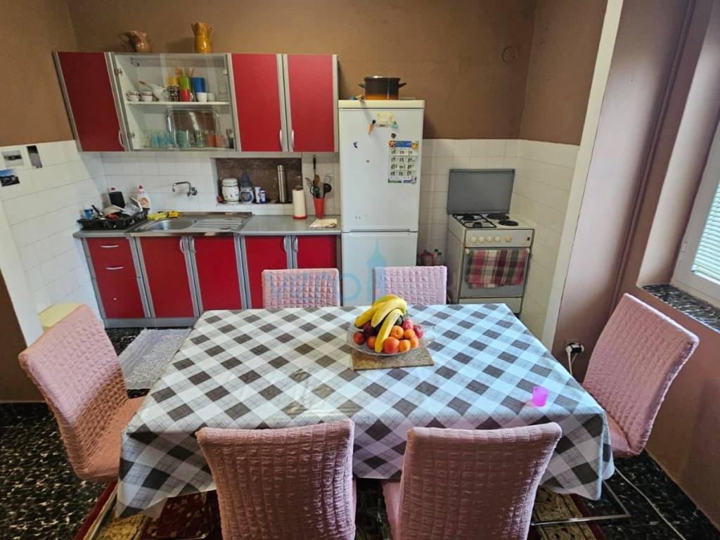 Zum Verkauf steht ein freistehendes Haus mit 110 m² Wohnfläche und einem Grundstück von 980 m². Die Immobilie bietet insgesamt eine ausgezeichnete Grundlage für eine Investition aufgrund ihrer Lage und des Meerblicks vom Grundstück aus. Das Haus ist als Hochparterre konzipiert und besteht aus Flur, Wohnzimmer, Küche mit Essbereich, Badezimmer, zwei Schlafzimmern, Terrasse und Balkon. Im Untergeschoss befinden sich der Zisternenraum und ein Abstellraum. Die Zisterne kann aufgrund der Verfügbarkeit der städtischen Wasserversorgung in einen anderen Raum umgewandelt werden. Neben dem Hauptgebäude befinden sich ein weiterer Abstellraum und eine Garage.