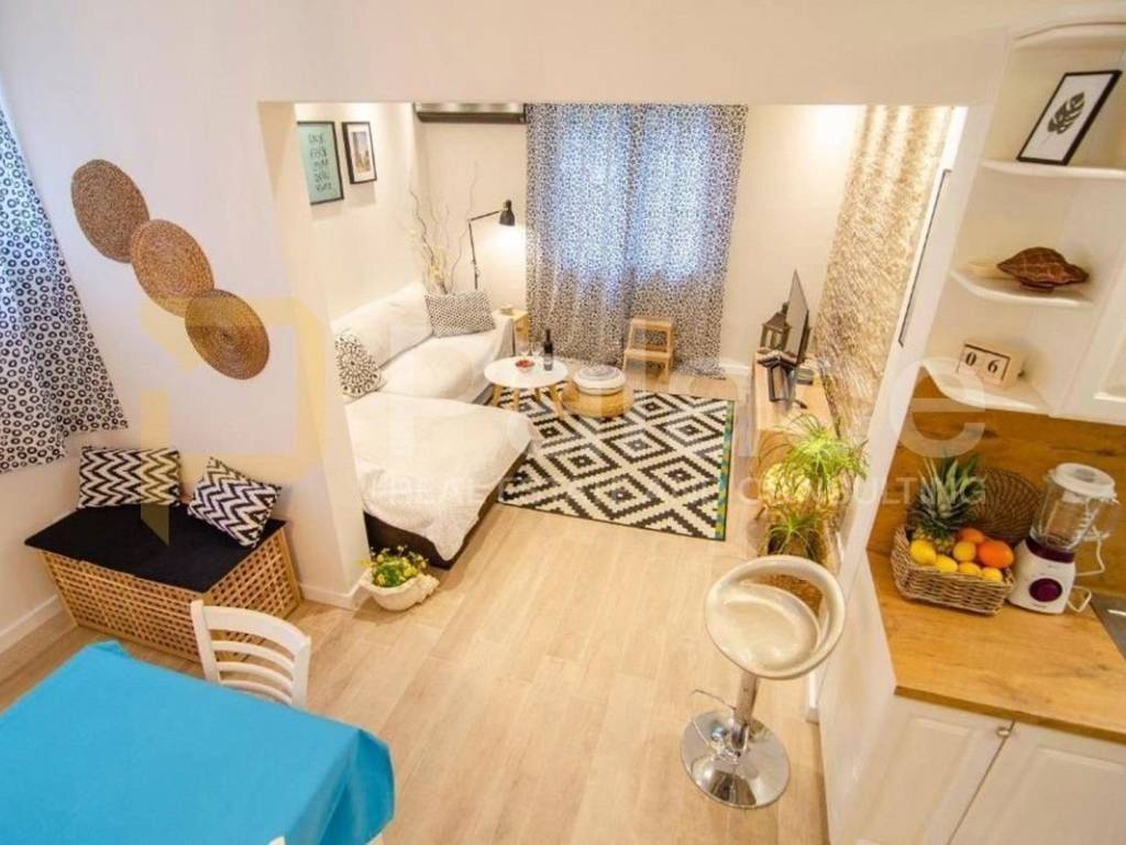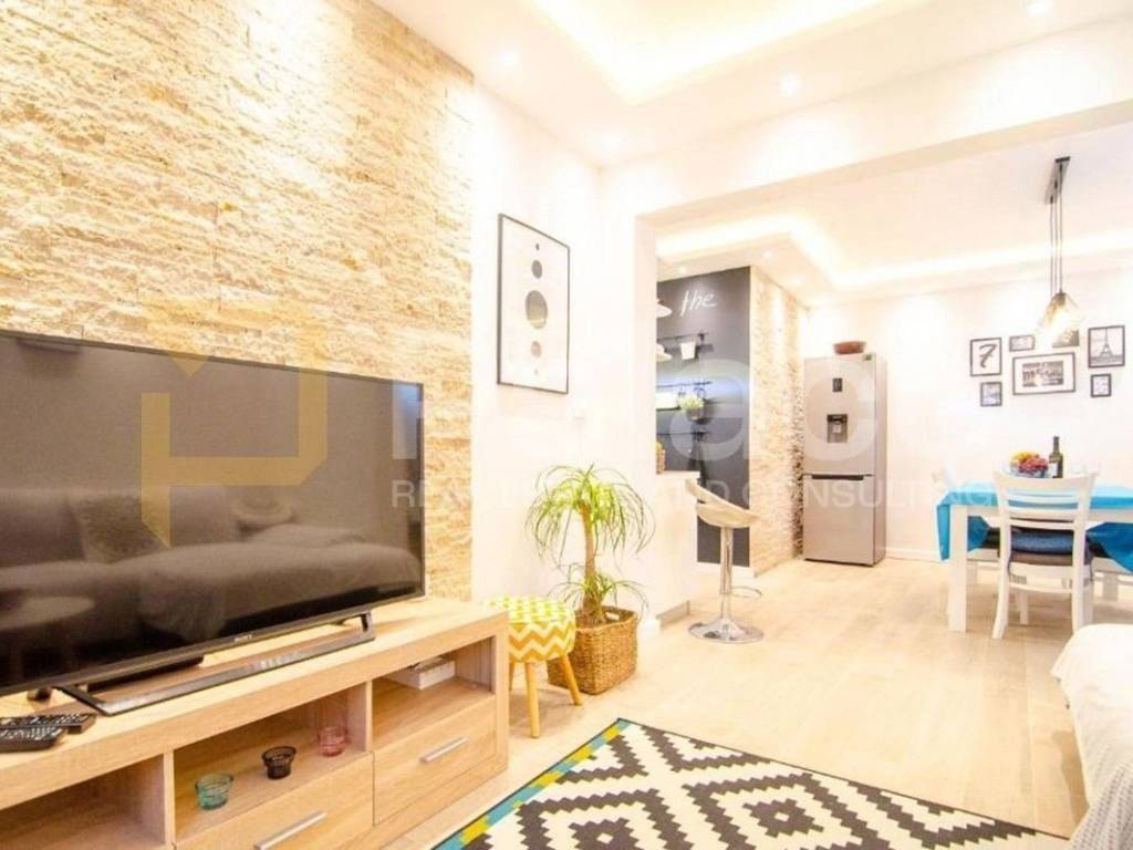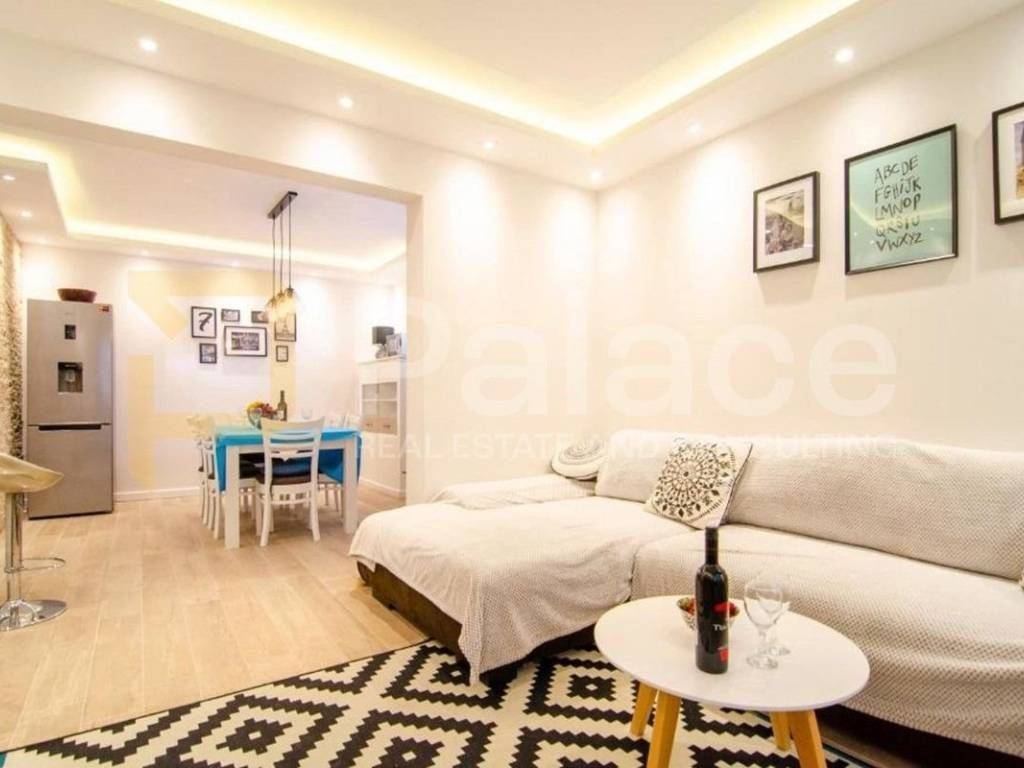 Die Wohnung war ursprünglich dreizimmerig, wurde aber durch eine Renovierung in ein Wohnzimmer umgewandelt. Es besteht die Möglichkeit, die Unterteilung wieder rückgängig zu machen, um ein drittes Schlafzimmer zu erhalten.
