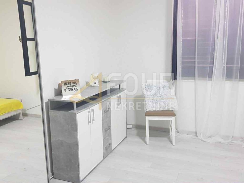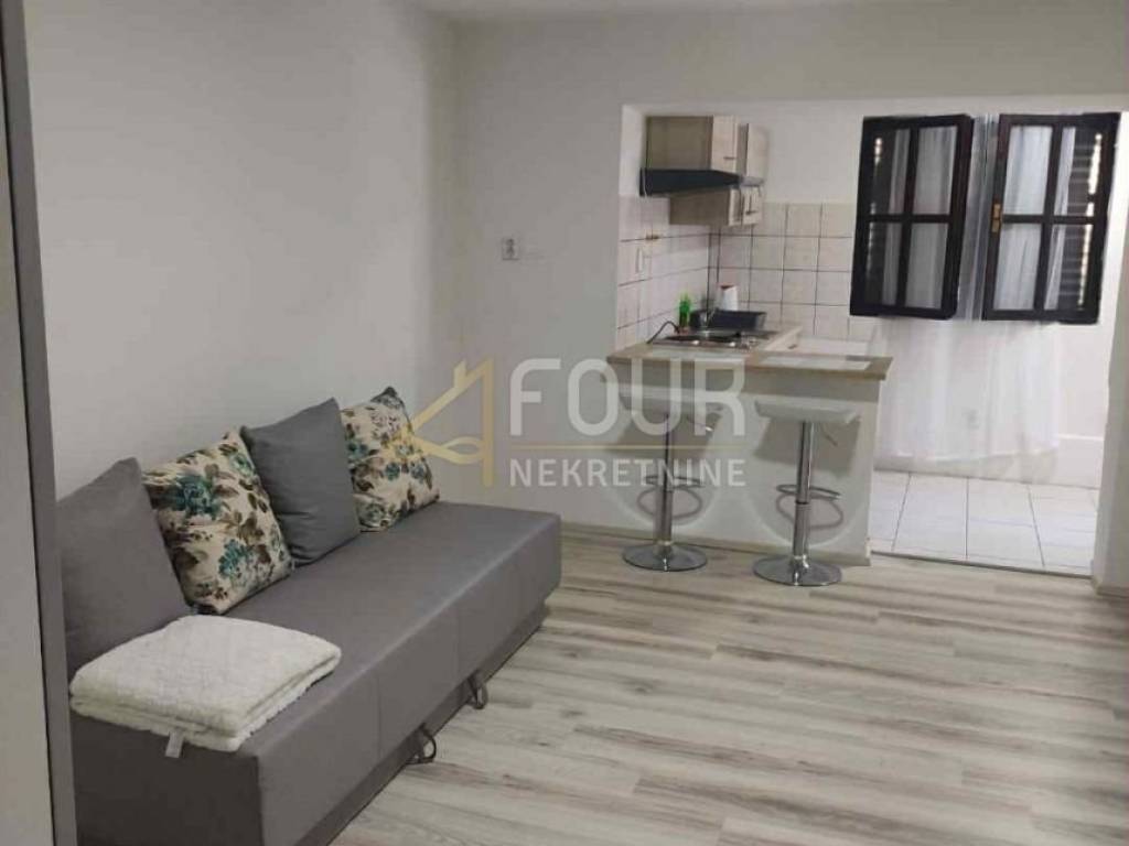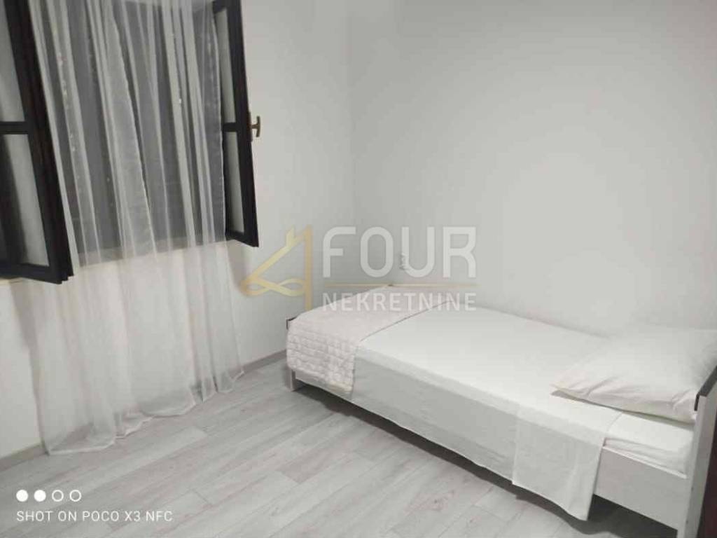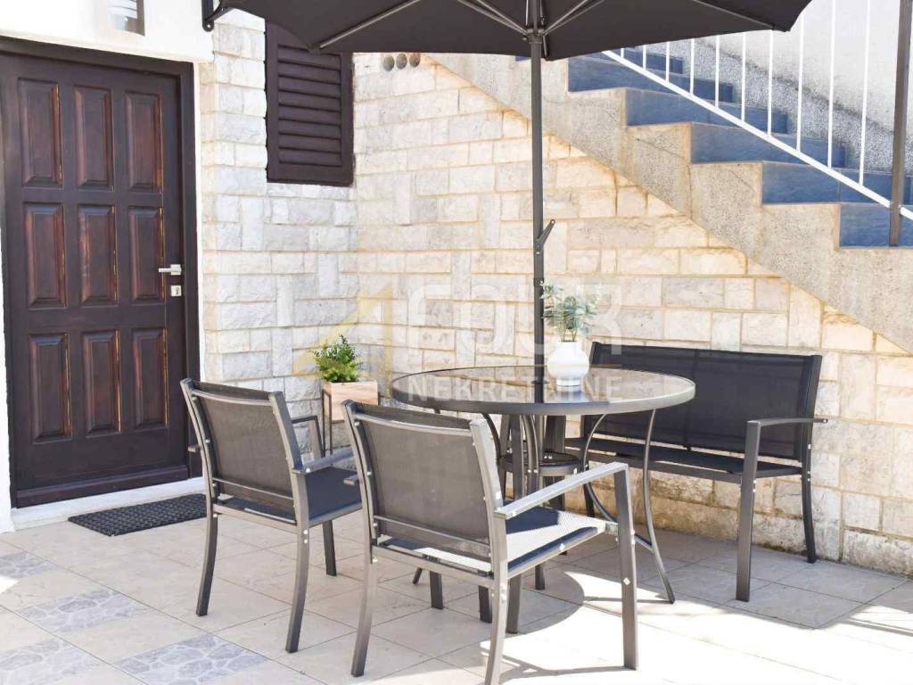 Sie besteht aus zwei Schlafzimmern, einem Wohnzimmer und einer Küche, ist vollständig möbliert und sofort bezugsfertig. Die Wohnung wurde 2014 renoviert, und die Fassade wurde zusätzlich erneuert. Ausgestattet ist sie mit PVC-Fenstern und Klimaanlage, und es gehört ein Außenstellplatz dazu. Im Hof gibt es einen Garten und einen Grillbereich zur gemeinschaftlichen Nutzung.
