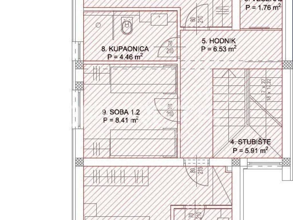 Na prvom katu nalaze se tri luksuzne spavaće sobe, dvije profinjeno uređene kupaonice te odvojena praonica rublja.