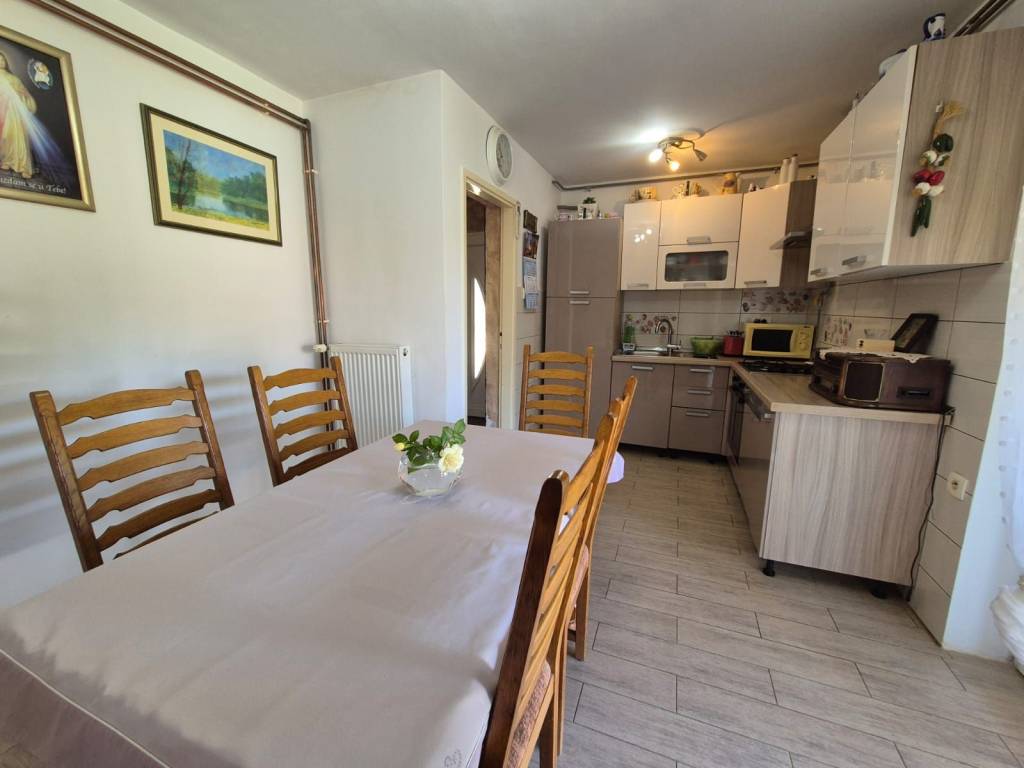 Na lijepoj ravnoj parceli od 666m2, voda, struja, plin, novija PVC stolarija s komarnicima, pločice i parket, fasada 10cm izolacija. Parking u garaži ili/i dvorišu s gornje strane za par automobila.