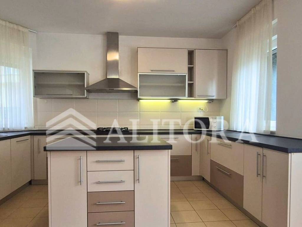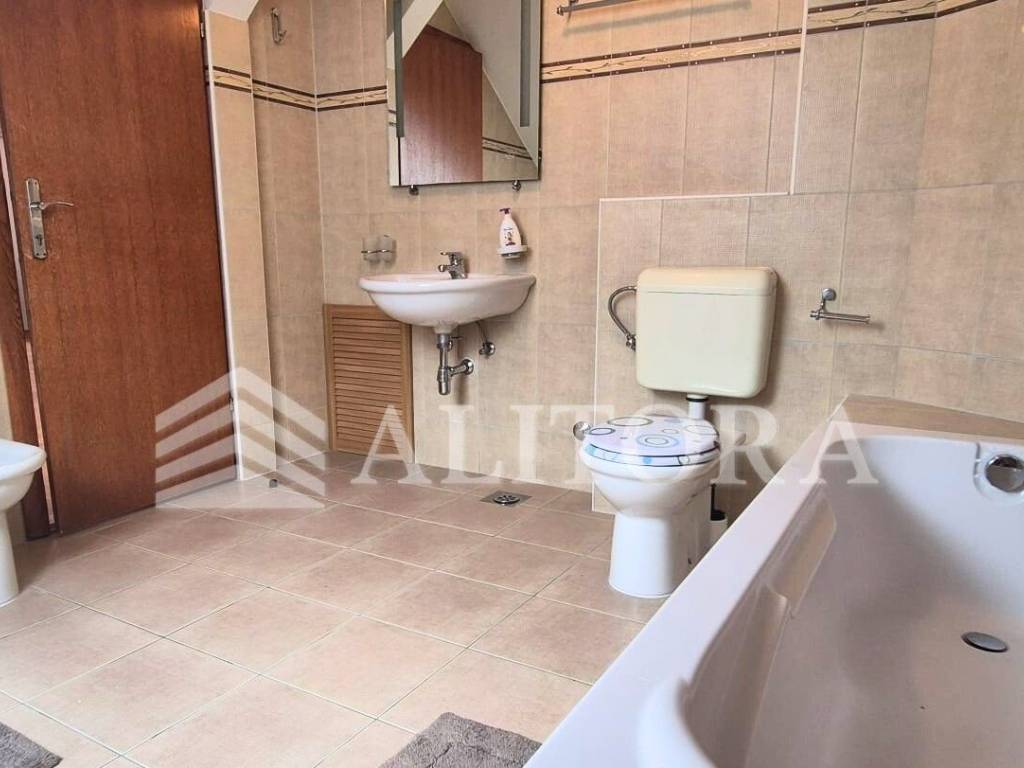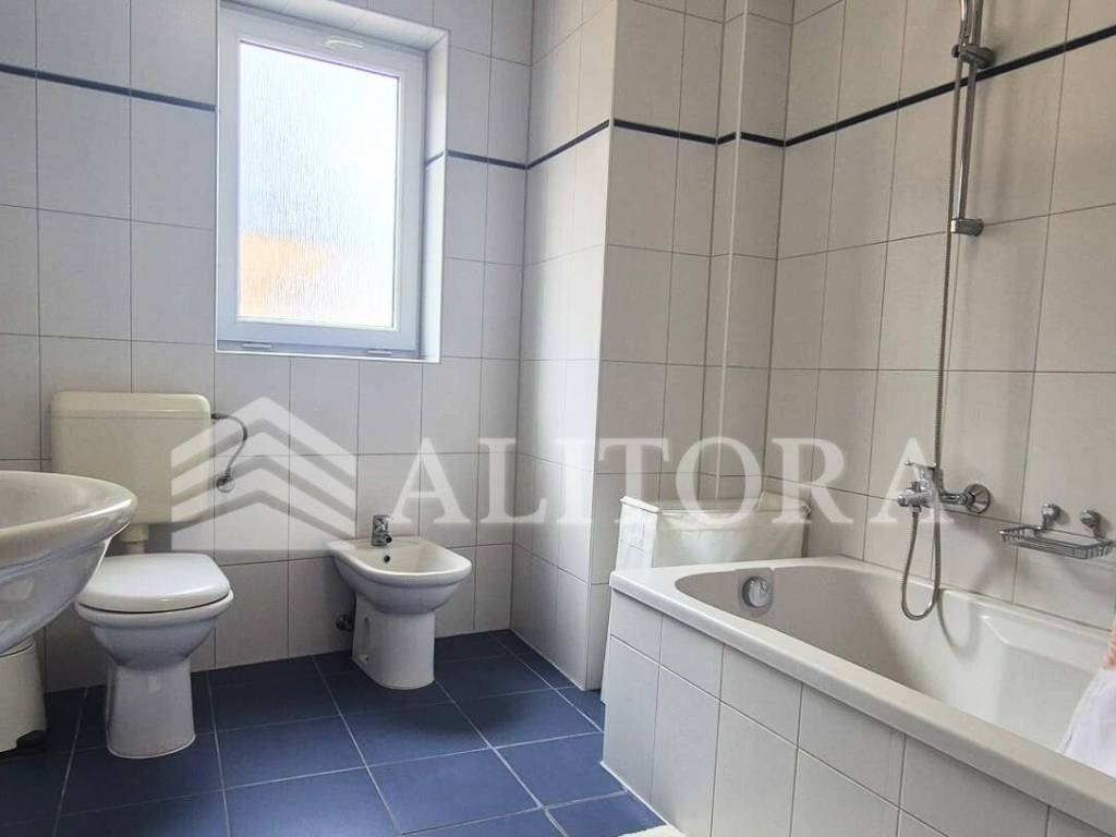 Kupaonica, potpuno opremljena kuhinja s blagovaonicom i dnevnim boravkom iz kojeg se izlazi na prostranu terasu s pogledom na zelenilo.