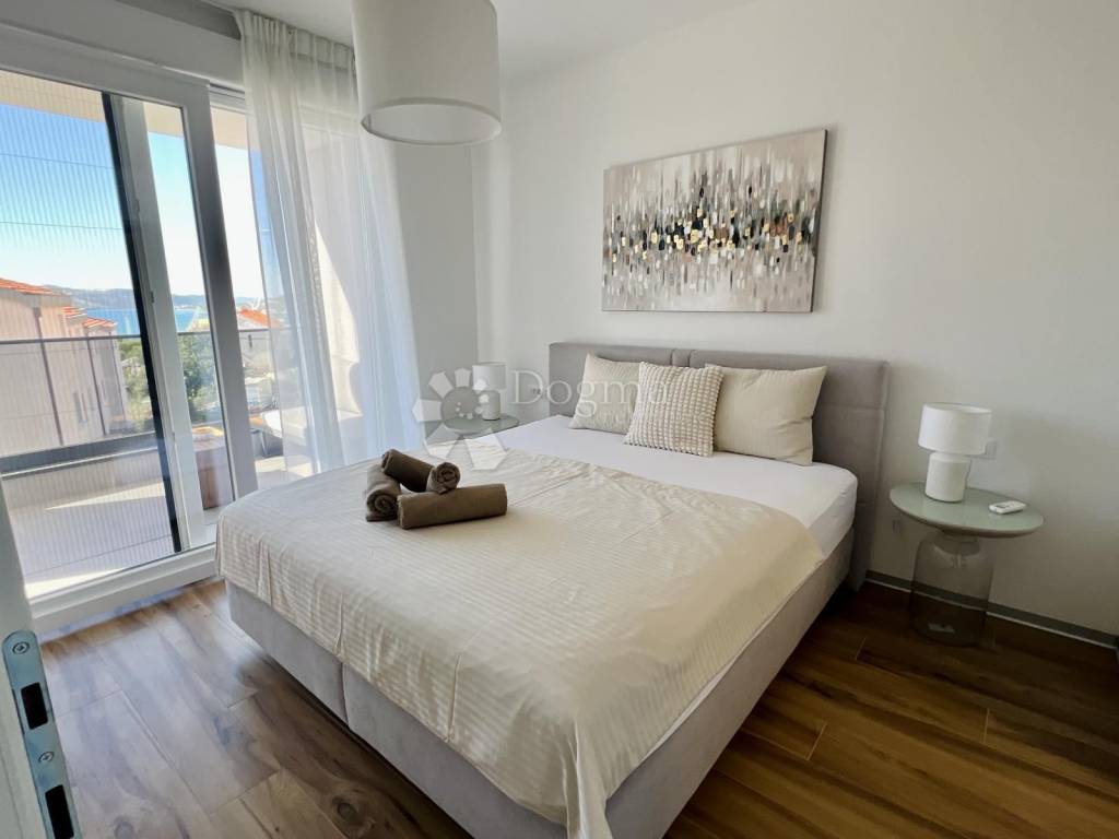 Exklusive Penthouse-Wohnung in einem modernen Neubau in Trogir (Saldun) mit großer Dachterrasse und Panoramablick auf das Meer. Die Wohnung besteht aus: Flur, Wohnzimmer, Küche mit Essbereich, Abstellraum, Gäste-WC, Flur, 3 Schlafzimmern und 2 Badezimmern mit einer Gesamtwohnfläche von 105,84 m², sowie zwei Balkonen von 11,26 m² und 16,51 m². Zur Wohnung gehört außerdem eine Dachterrasse. Die Wohnung wird voll möbliert und bezugsfertig verkauft. Im Preis enthalten sind ein Tiefgaragenstellplatz und ein Abstellraum. Der Investor ist im Mehrwertsteuersystem – keine Grunderwerbsteuer (3%) zu zahlen. Das Gebäude verfügt über eine Benutzungsgenehmigung, sodass ein Kauf über Kreditfinanzierung möglich ist. Die Immobilie befindet sich in erhöhter Lage, nur wenige Gehminuten vom Meer und einem gepflegten Strand entfernt, mit ausgezeichneter Anbindung und in der Nähe aller Einrichtungen für ein komfortables Leben. Für weitere Informationen: Ivana Fabiana Buljubašić +385 91 532 7295 ivana.buljubasic@dogma-nekretnine.com ID CODE: ST4320 Ivana Fabiana Buljubašić Asistent u posredovanju Mob: 091/532-7295 Tel: +385 21 293 201 E-mail: ivana.buljubasic@dogma-nekretnine.com www.dogma-dalmacija.com