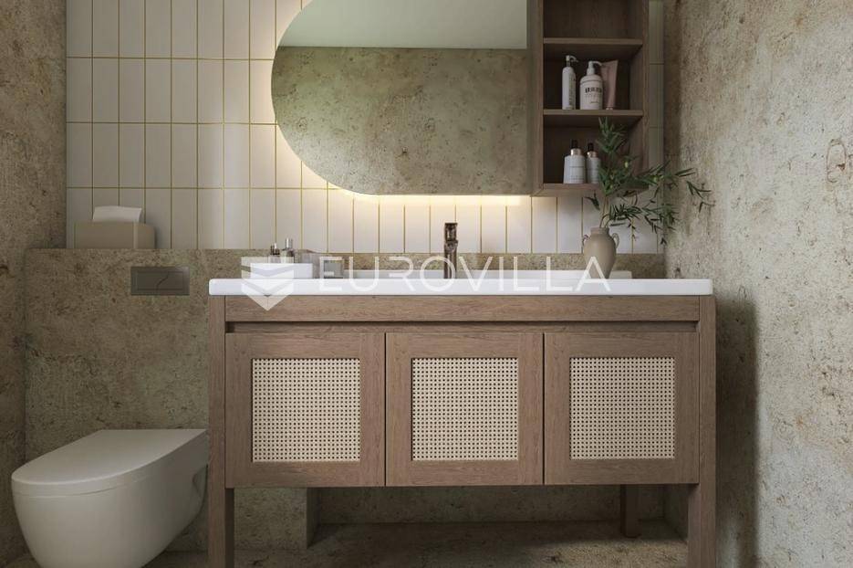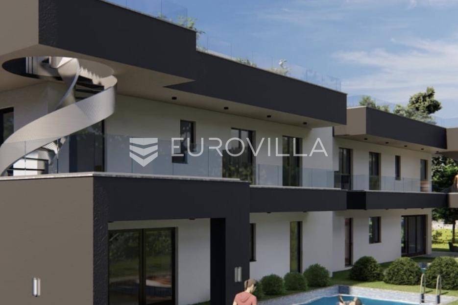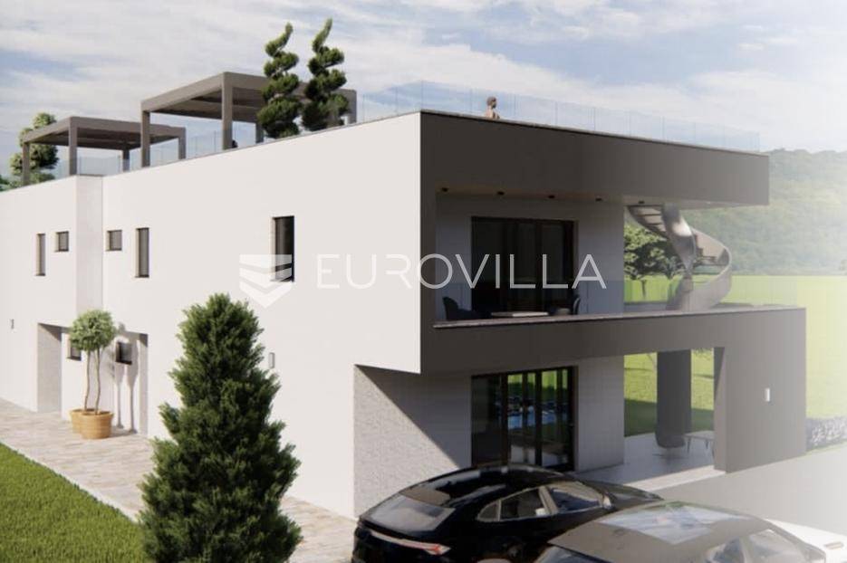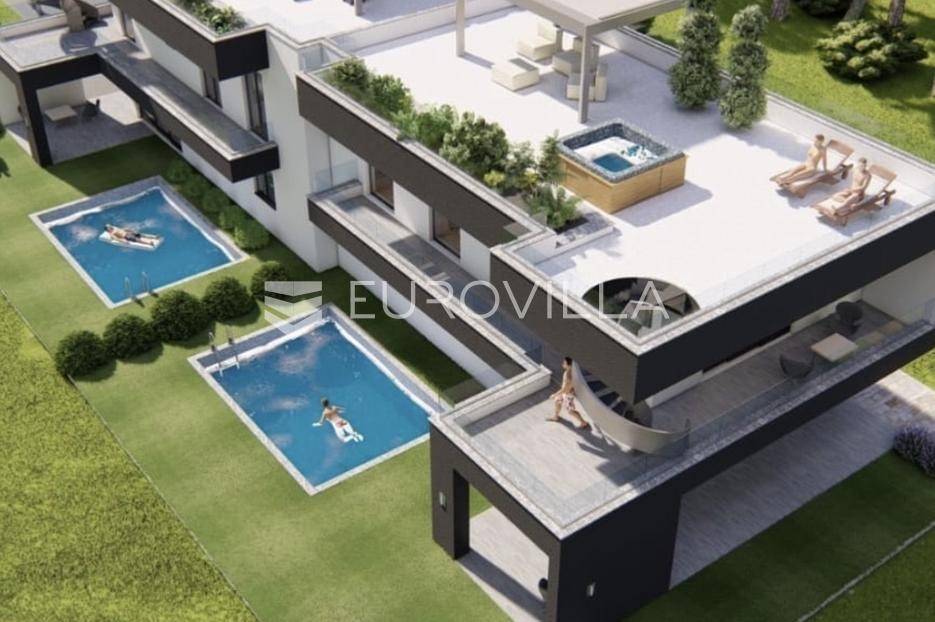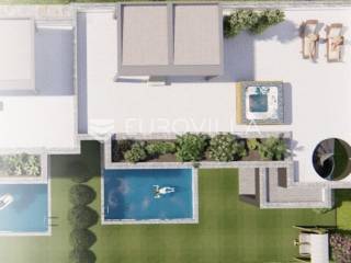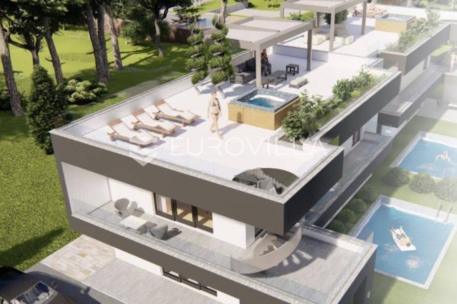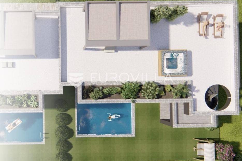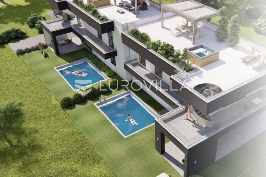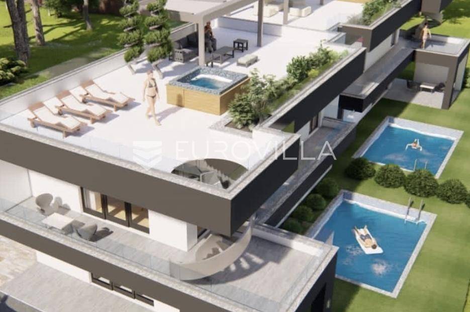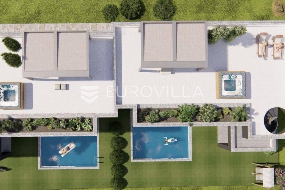 Arhitektonski skladan i promišljen projekt sastoji se od dvije luksuzne vile simetričnog dizajna.Svaka jedinica ima zaseban ulaz, vlastito dvorište, privatni bazen i prostranu krovnu terasu s jacuzzijem i natkrivenom lounge zonom - osmišljeno za maksimalnu privatnost, udobnost i eleganciju.