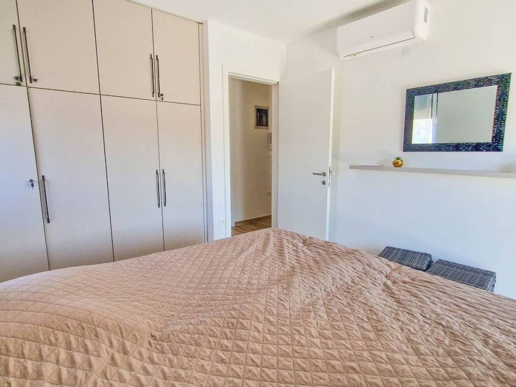 Wunderschöne, hochwertig ausgestattete Zwei-Zimmer-Wohnung mit Meerblick.Die Wohnung besteht aus einem großzügigen Wohnbereich mit Küche und Esszimmer, einer großen Terrasse mit Meerblick, zwei Schlafzimmern, einem Badezimmer und einem Flur.Zum Eigentum gehören zwei Parkplätze.Die Wohnung wird komplett möbliert verkauft und ist mit drei Klimaanlagen sowie Fußbodenheizung ausgestattet, was ganzjährigen Wohnkomfort gewährleistet.