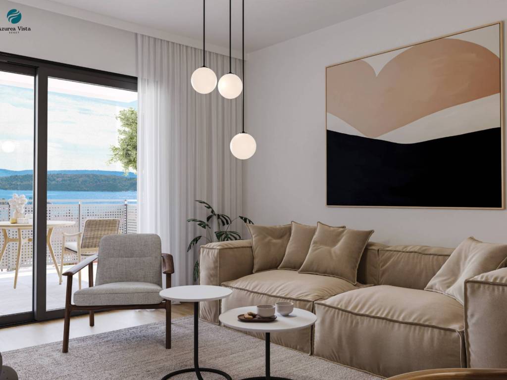 Na prodaju je prekrasan stan na prvom katu luksuzne novogradnje u Trogiru, idealan za život, odmor ili investiciju. Stan površine 50,20 m² nudi funkcionalan i moderan prostor: