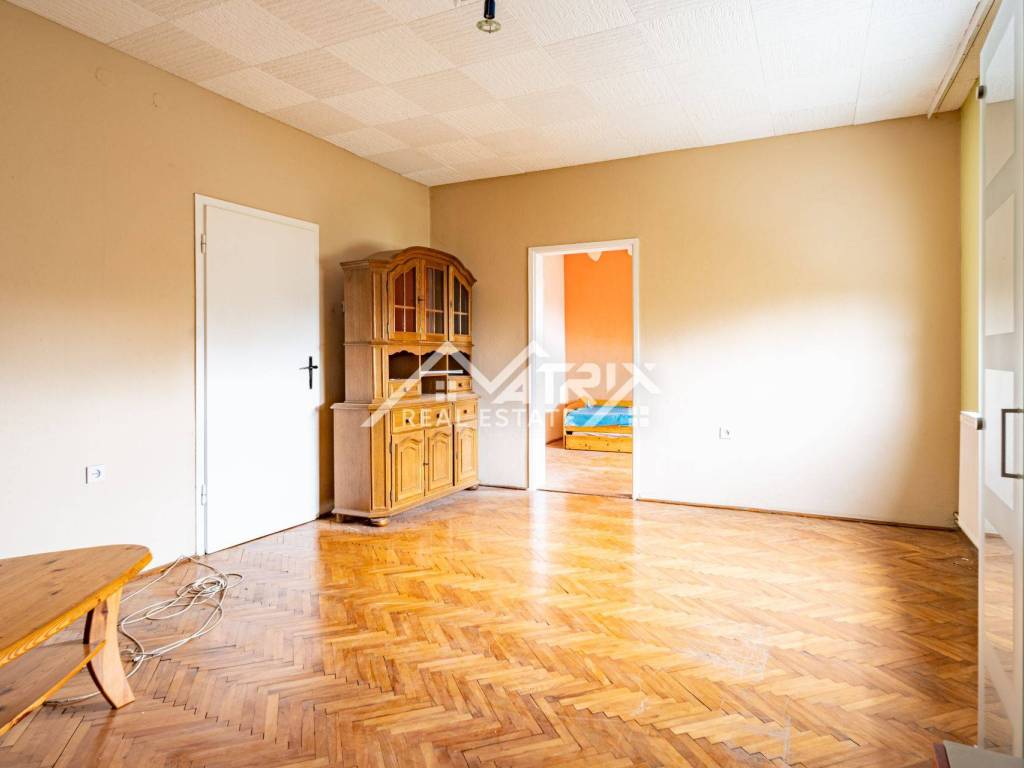Das Innere des Hauses befindet sich im ursprünglichen Zustand und benötigt eine teilweise Renovierung – ideal für Käufer, die den Raum individuell anpassen möchten, ohne eine vollständige Sanierung durchführen zu müssen. Die Grundstruktur ist solide, und der Grundriss gut durchdacht.