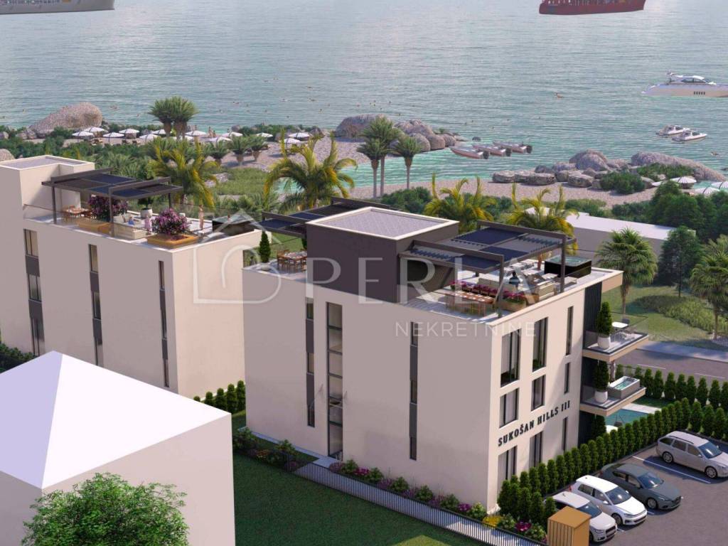 Diese luxuriöse Wohnung steht im Rahmen des Projekts SUKOŠAN HILLS RESIDENCE zum Verkauf. Das Projekt befindet sich in exklusiver Lage in Sukošan, nahe dem Meer und dem Strand.