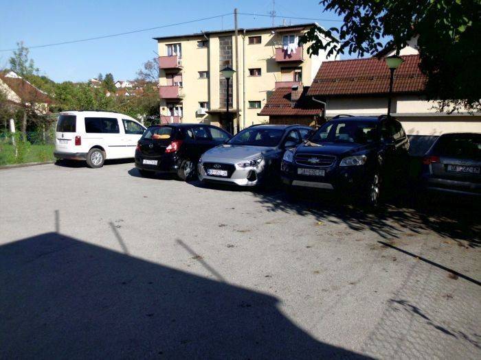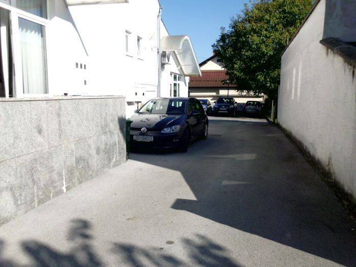 Dvorište i ulaz na parcelu je asfaltiran, iza objekta je 6 parkirnih mjesta + 1 s bočne strane.