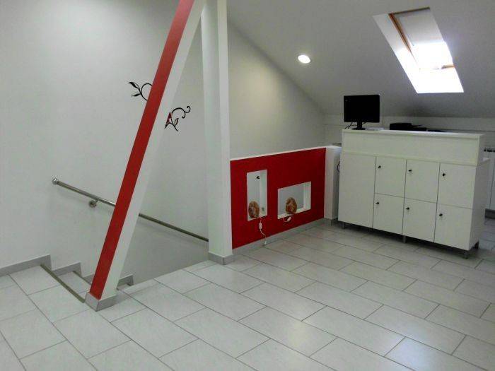 Iznad je potkrovlje, kompletno uređeno, u funkciji slane sobe, prostorije za masažu, garderobe i kupaone za klijente, te čekaonica i ured, ukupno 71 m2.