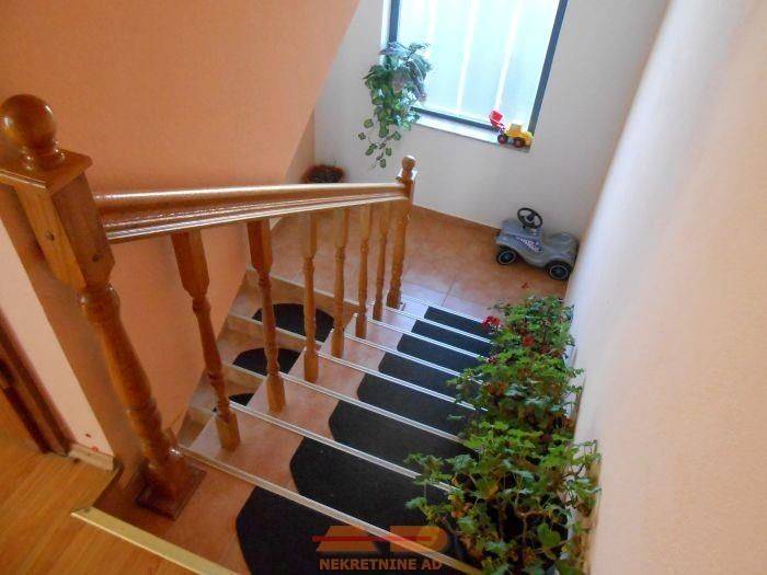 Unutarnje stubište povezuje etaže, a na katu su: hodnik, 3 sobe, 1 nedovršena, te kupaona.