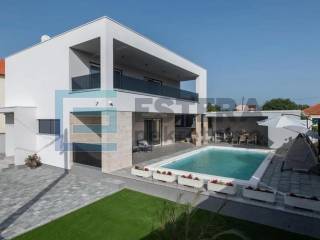 - Prizemlje: prostrani dnevni boravak i blagovaonica s izlazom na bazen i prostor za roštilj