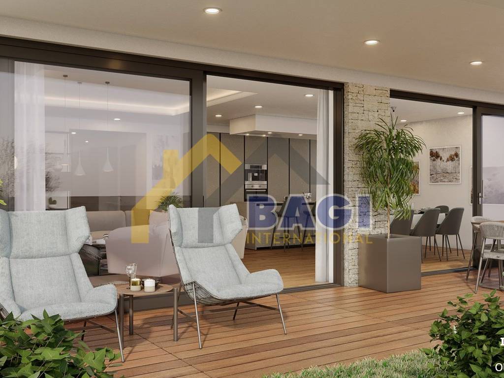 Die großzügige Wohnung ist bis ins Detail durchdacht und mit hochwertigen Materialien gebaut und befindet sich im Erdgeschoss. Es besteht aus einer Eingangshalle, einer offenen Küche, einem Esszimmer und einem zu den Terrassen offenen Wohnzimmer, einem Gäste-WC, einem Abstellraum und 2 Schlafzimmern mit Kleiderschränken und privaten Badezimmern. Die Fläche der Wohnung beträgt 148,73 m2.