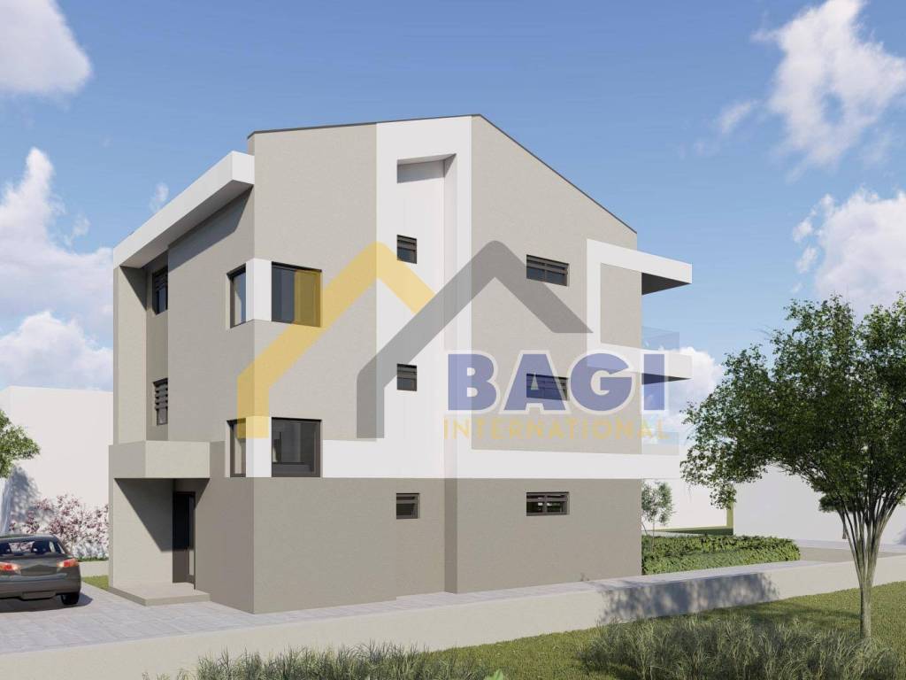 Die genannte Wohnung wird sich im ersten Stock des Gebäudes befinden und aus einem Flur, einem Wohnzimmer und einer Küche, zwei Schlafzimmern, einer Speisekammer, einem Badezimmer und einem Parkplatz im Hof bestehen. Die Ausrichtung der Wohnungen ist Südwesten. Die Wohnungen werden modern und nach höchsten Standards gebaut. Bei der Ausstattung legen wir Wert auf Sicherheitstüren, anthrazitfarbene PVC/Aluminium-Zimmerei mit eingebauten Moskitonetzen und elektrischen Jalousien, Fußbodenheizung in der gesamten Wohnung, Mitsubishi-Inverter-Klimaanlage in jedem Zimmer, Vorbereitung für ein Elektroauto auf dem Parkplatz und modernes Keramikdesign.