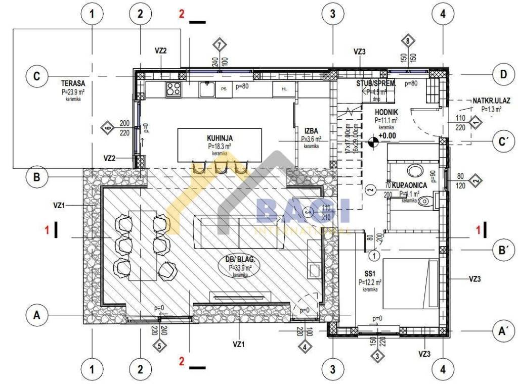Zum Verkauf steht ein attraktives Haus im Bau, gelegen im authentischen istrischen Dorf Čabrunići, das sich in unmittelbarer Nähe der Renaissancestadt Svetvinčenat befindet. Dieser Standort zeichnet sich durch sein reiches kulturelles Erbe, sein vielfältiges gastronomisches Angebot und zahlreiche Veranstaltungen das ganze Jahr über aus, was diese Gegend ideal zum Wohnen und Erholen macht.