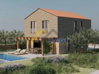 Das Grundstück mit einer Fläche von 547,43 m2 befindet sich am Ende einer malerischen Sackgasse und hat eine regelmäßige Form mit Zugang von einer öffentlichen Straße. Es wird von traditionellen Trockenmauern auf zwei Seiten umgeben, was zusätzliche Privatsphäre und ein authentisches istrisches Ambiente gewährleistet.