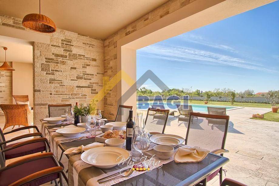 Wir verkaufen eine luxuriöse Villa im Herzen Istriens mit einer Gesamtfläche von 400 m2 auf einem Grundstück von 1986 m2, auf dem ein Swimmingpool von 60 m2 (6x10) gebaut wurde.