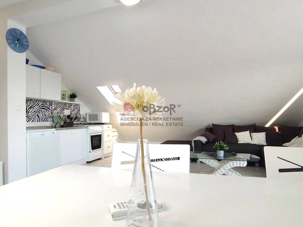 Diese Wohnung wurde im Jahr 2009 erbaut und ihre Lage im Dachgeschoss eines zweistöckigen Hauses bietet den Vorteil eines angenehmen Blicks auf das Meer und die umliegende Landschaft. Mit ihrem Grundriss und der Raumaufteilung ist die Wohnung für einen komfortablen Aufenthalt angepasst, zusätzlich bieten die zwei zugehörigen Balkone Entspannung im Freien.
