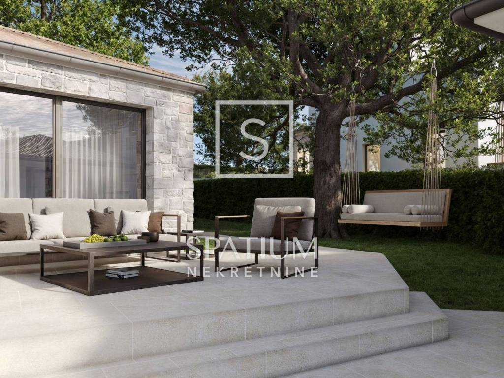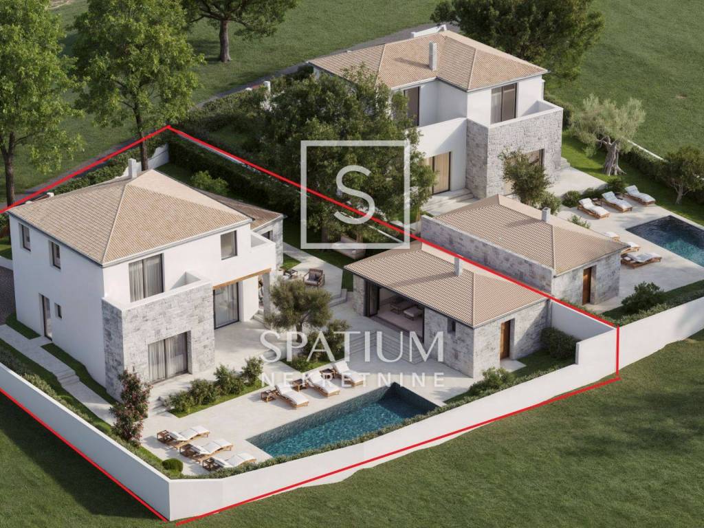 SVETI LOVREČ, Zum Verkauf steht ein modernes Haus im istrischen Stil mit Swimmingpool, gelegen an einer ruhigen Lage in der Nähe von Sveti Lovreč, nach Westen ausgerichtet mit Meerblick. Die Verbindung von Tradition und modernem Design spiegelt sich in jeder architektonischen Linie und jedem Detail des Interieurs wider. Das Haus erstreckt sich über zwei Etagen mit durchdachtem Raumkonzept und großzügigen Innen- und Außenbereichen, die eine perfekte Balance zwischen Funktionalität und Komfort bieten.