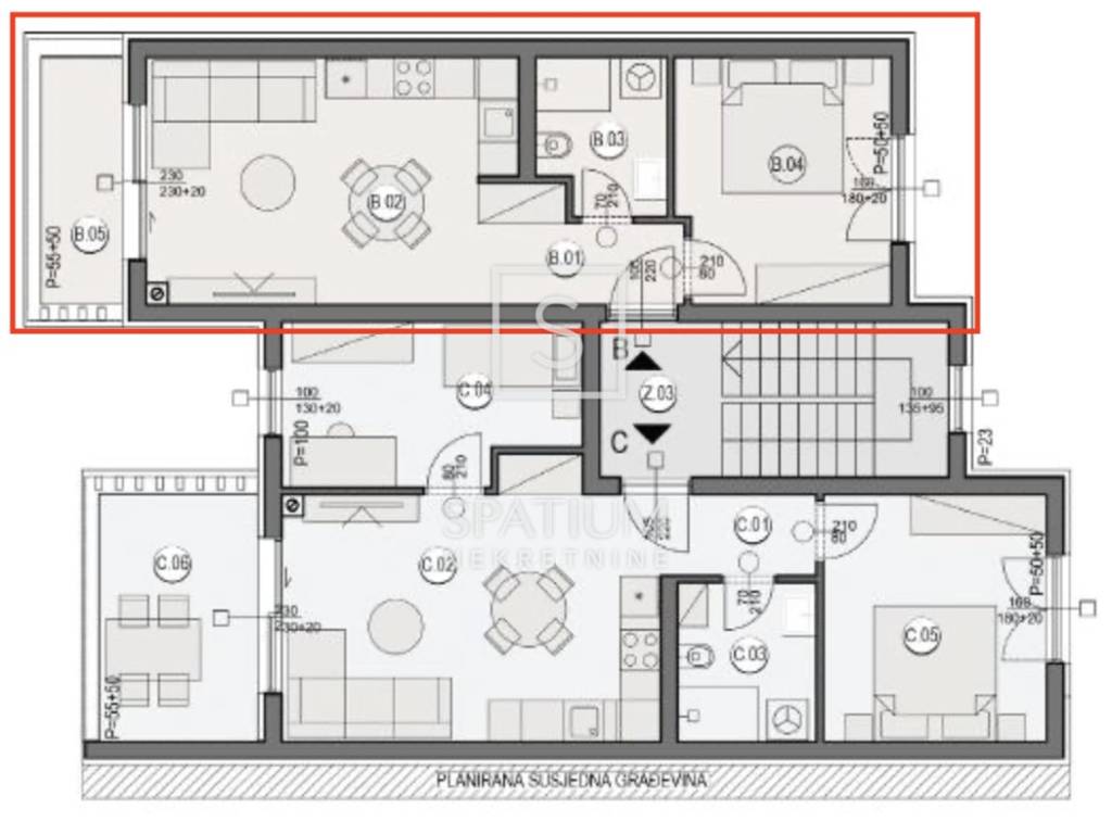 Zur Wohnung gehören ein Parkplatz (P2) (12,50 m²) und ein Abstellraum (S01) (4,08 m²).