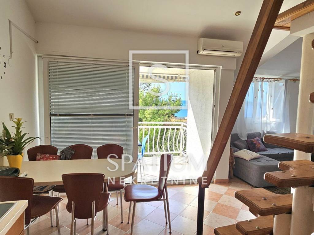 NOVI VINODOLSKI, wir bieten eine Wohnung mit Galerie und Meerblick an. Sie befindet sich im zweiten Stock eines kleinen Wohngebäudes mit insgesamt drei Wohnungen. Die Wohnfläche beträgt 65,71 m² und besteht aus Flur, Küche mit Esszimmer und Wohnzimmer mit Galerie, zwei Schlafzimmern, Bad und Loggia. Die Wohnung ist komplett möbliert und verfügt über eine Klimaanlage zum Heizen/Kühlen. Ein Kamin ermöglicht die Beheizung mit Festbrennstoffen. Zur Wohnung gehört ein Parkplatz. Die Wohnung befindet sich in ruhiger Lage, in der Nähe aller notwendigen Annehmlichkeiten. Geeignet für einen ganzjährigen Aufenthalt oder einen Urlaub am Meer.