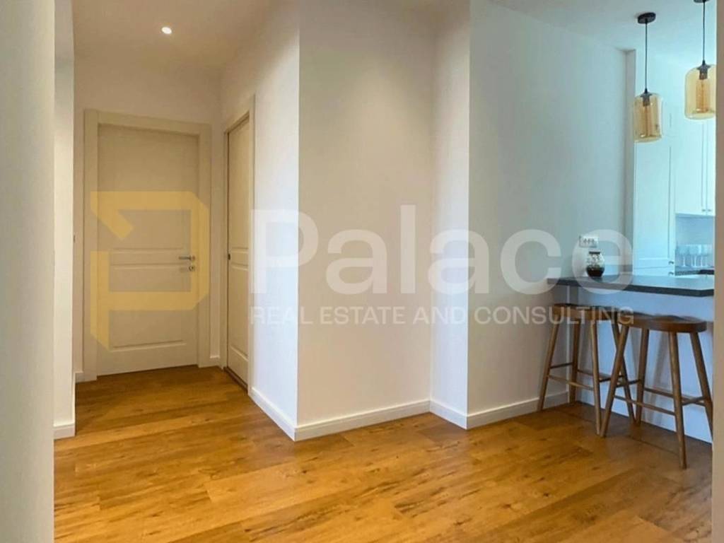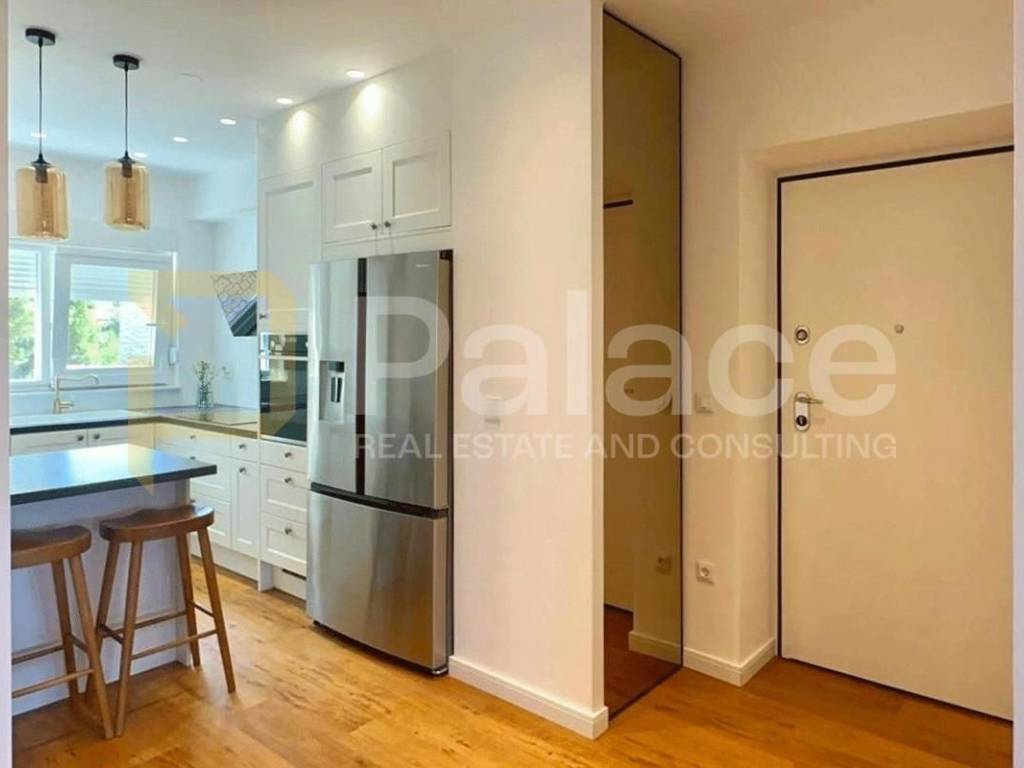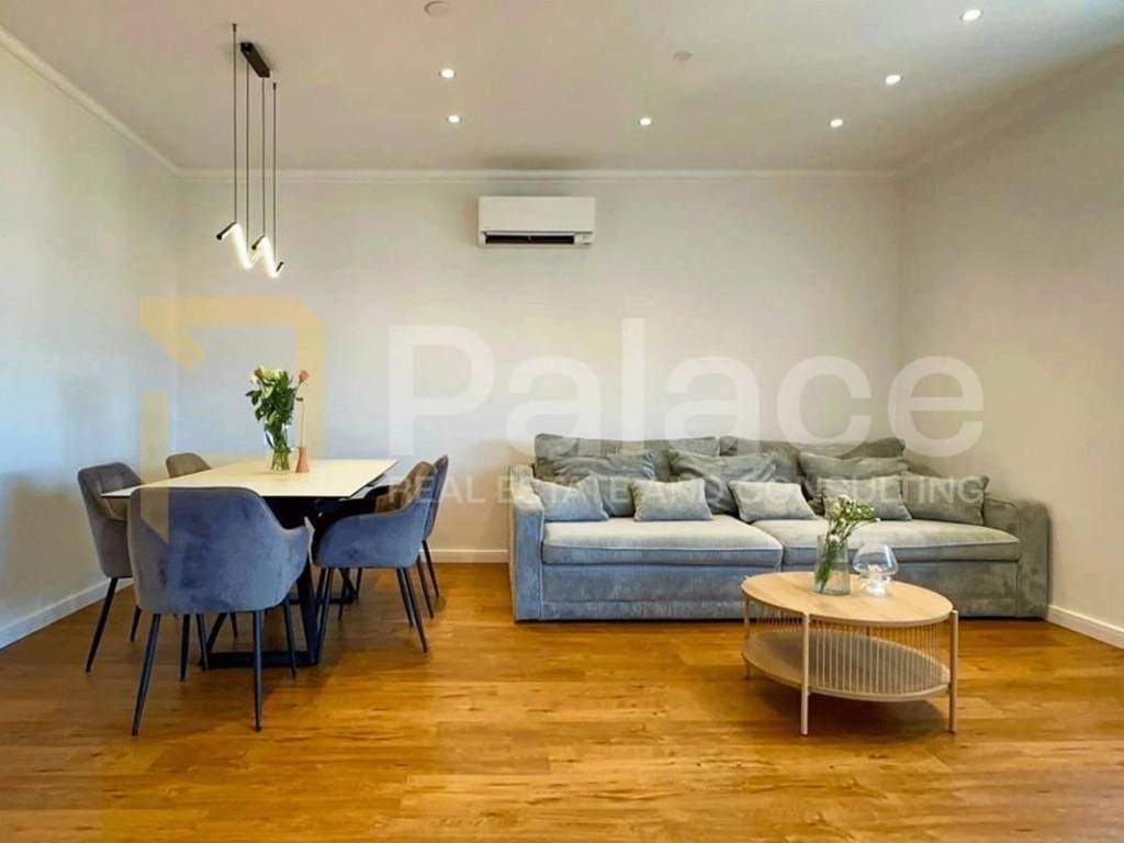 Sie besteht aus einem geräumigen Wohnzimmer, einer maßgefertigten voll ausgestatteten Küche, zwei komfortablen Schlafzimmern mit Einbauschränken und einem modernen Badezimmer mit Fußbodenheizung und begehbarer Dusche. Die Wohnung verfügt über zwei Balkone mit einer Gesamtfläche von 5 m2 und 7 m2, renoviert im Jahr 2024, die nicht in die Gesamtfläche der Wohnung eingerechnet sind, sowie ein Holzlager im Erdgeschoss des Gebäudes.