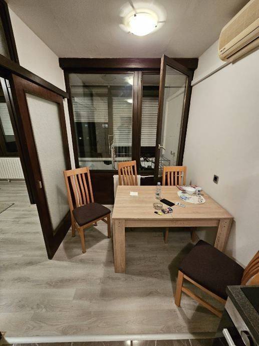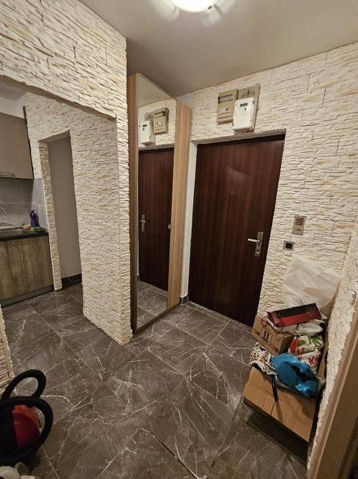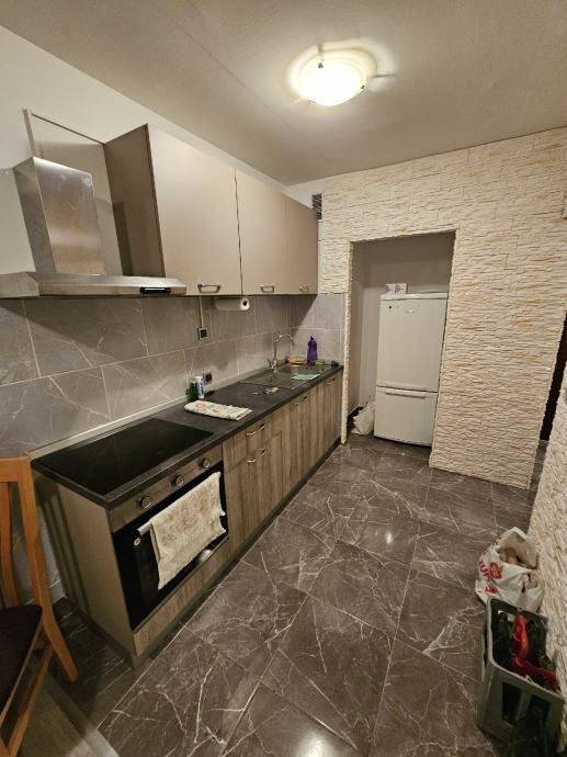 Stan je renoviran(nova kuhinja,keramika,instalacije,PVC-stolarija,protuprovalna vrata,dekorativni kamen na zidu).