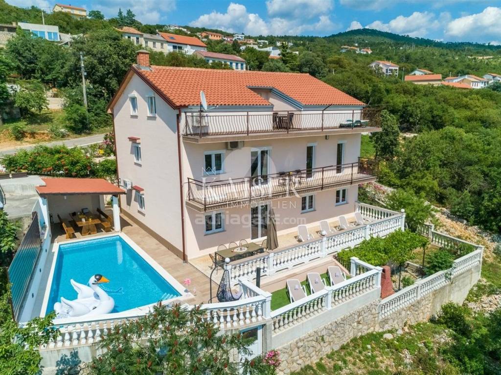 Kaiser Immobilien bringt ein schönes Haus mit Panoramablick auf das Meer auf den Markt, das sich in Crikvenica befindet. Das Haus besteht aus drei Etagen. Im Untergeschoss gibt es einen Fitnessraum und einen Raum für Tischtennis. Das Erdgeschoss und der erste Stock haben einen identischen Grundriss und bestehen aus einem Flur, einer Küche, einem Wohnzimmer, zwei Schlafzimmern und einem Badezimmer mit einer Gesamtfläche von 120 m2 pro Einheit und Terrassen von 18 m2. Das Dachgeschoss besteht aus Flur, Wohnzimmer, Küche, zwei Schlafzimmern und einem Badezimmer mit einer Gesamtfläche von 120 m2 und einem Balkon von 22 m2. Es gibt einen Swimmingpool, eine Garage und eine Sommerküche mit zwei Terrassen im Garten. Das Haus befindet sich in einem ruhigen Teil von Crikvenica und stellt eine hervorragende Investition für einen großartigen Urlaub und Aufenthalt dar. Die Dokumentation ist in Ordnung.