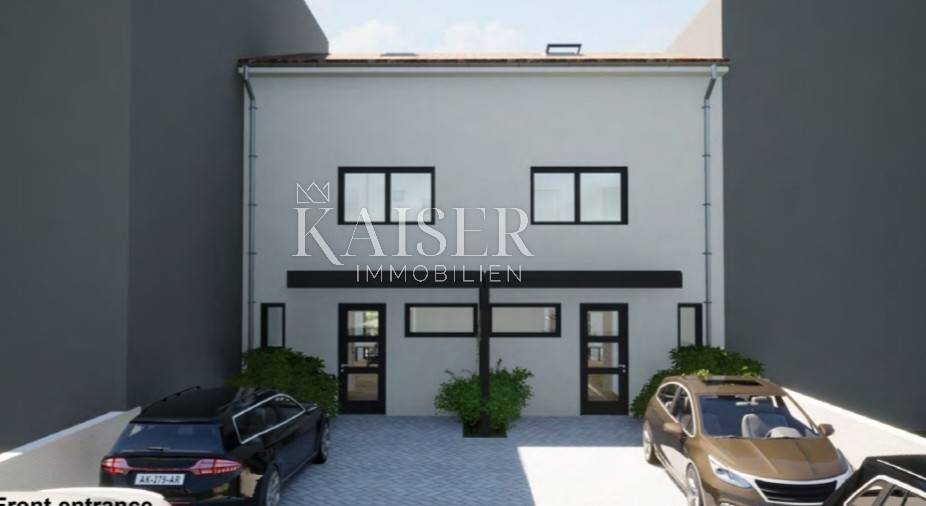 Kaiser Immobilien verkauft ein modernes Reihenhaus mit zwei Wohneinheiten. Jede Wohneinheit besteht aus einem Erdgeschoss, einem Obergeschoss und einem Dachgeschoss, insgesamt 126 m2. Im Erdgeschoss gibt es eine Eingangshalle, zwei Abstellräume, eine Küche, ein Esszimmer, ein Wohnzimmer und ein Badezimmer. Durch eine große Glaswand gelangt man auf eine schöne Terrasse von 16 m2 mit einer Pergola von einer Gesamtgröße von 17,60 m. Im Garten gibt es auch eine Sommerküche. Im ersten Stock befinden sich zwei Schlafzimmer mit einem Badezimmer. Das Dachgeschoss ist 41,90 m2 groß und besteht aus einem Treppenhaus, einem Zimmer mit Bad und einer Terrasse von 11,20 m2. Baubeginn, geplante Fertigstellung ist Ende 2024.