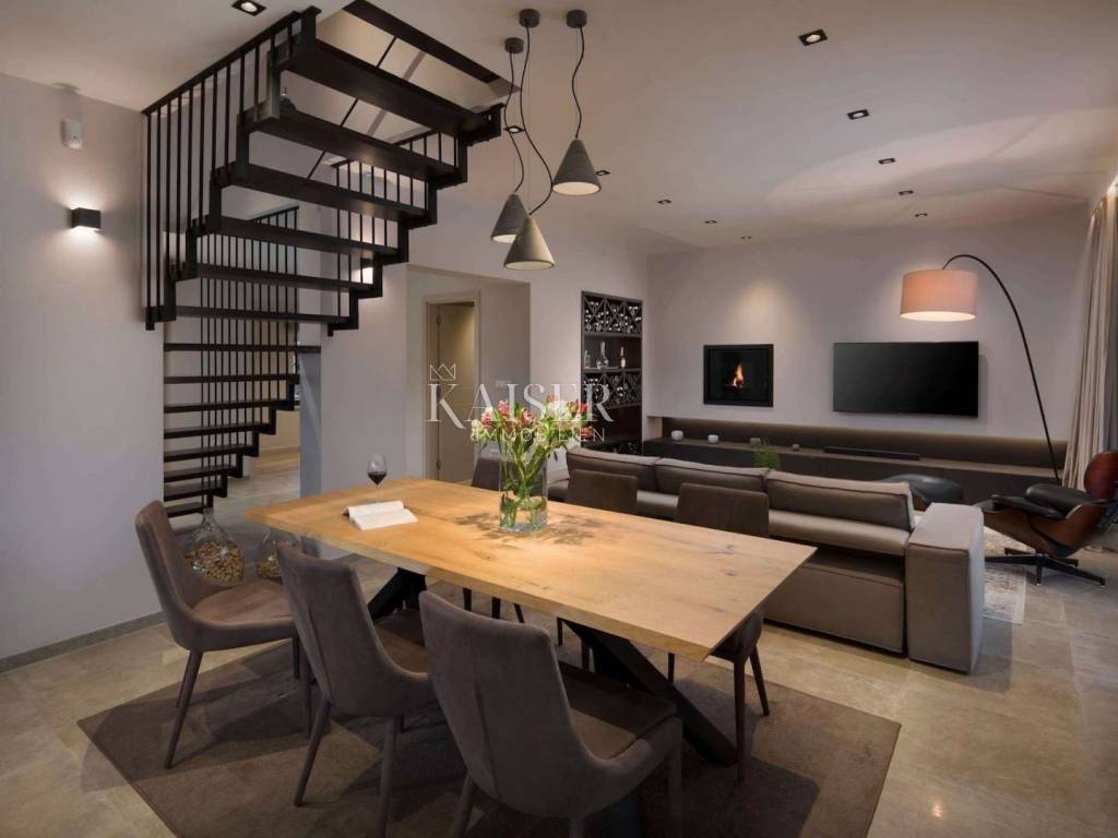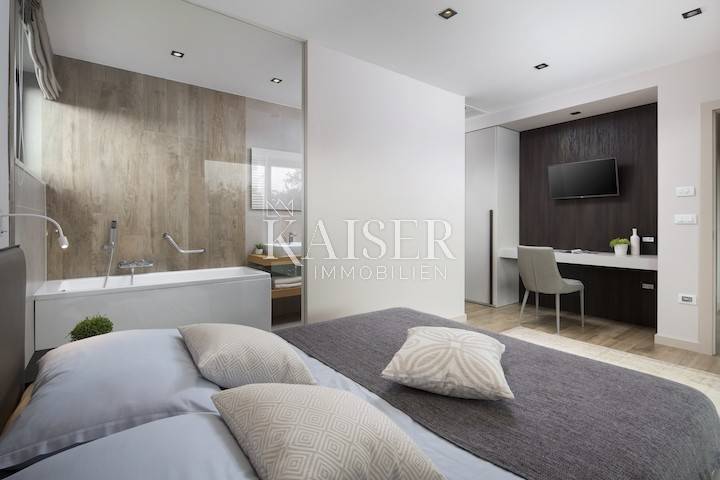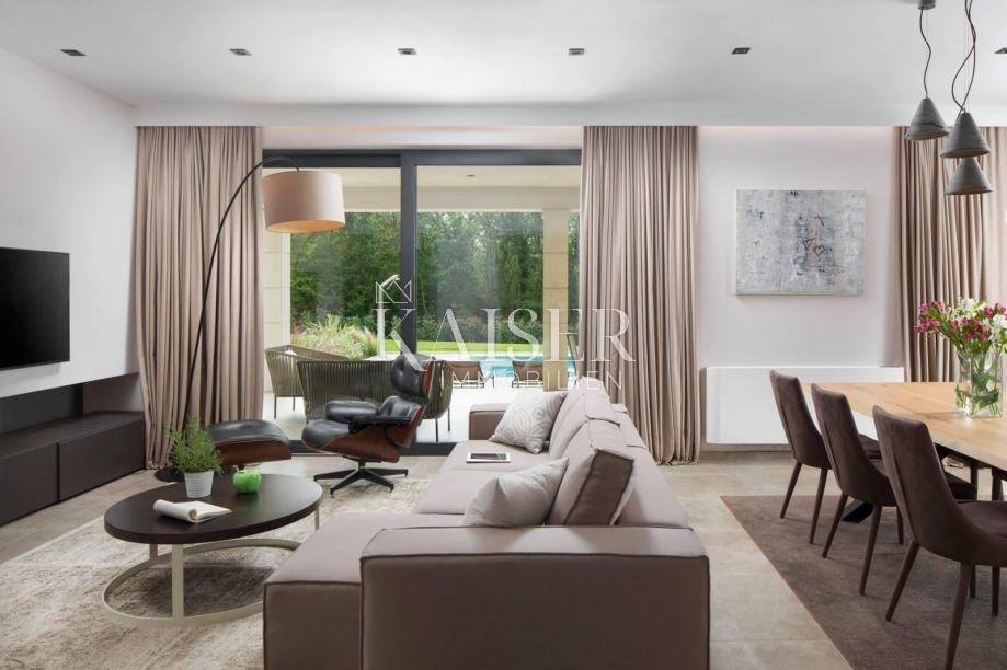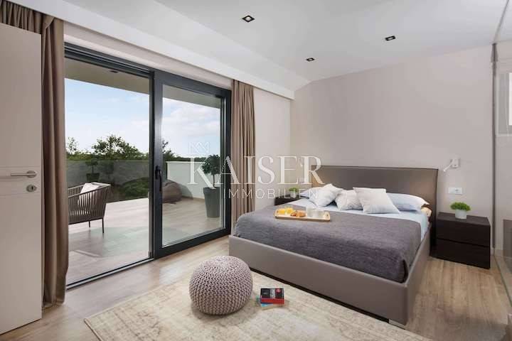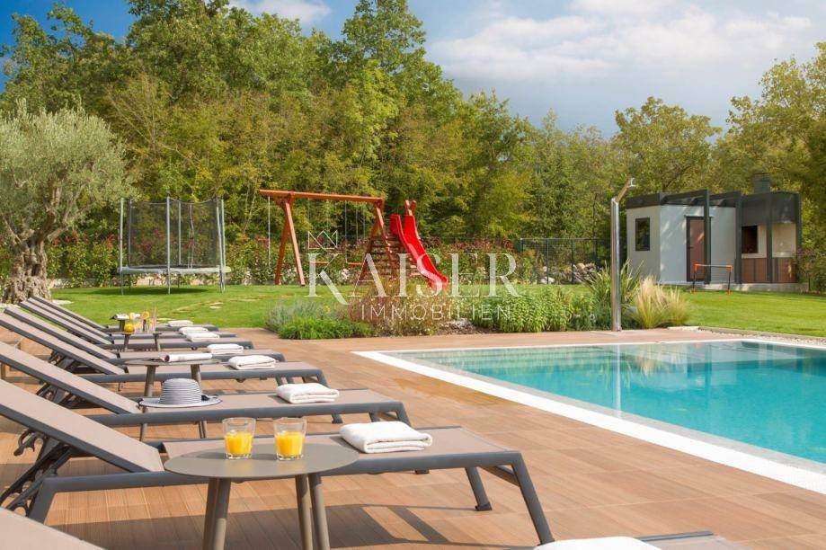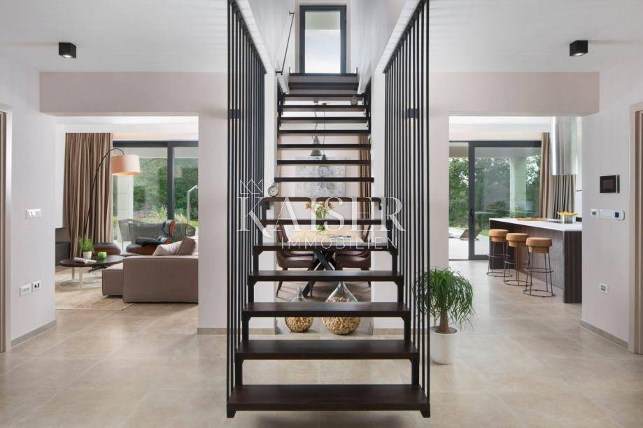 Kaiser immobilien verkauft diese Luxusvilla in der Nähe von Poreč. Diese schöne freistehende Villa befindet sich in einer kleinen Siedlung in der Nähe von Poreč. Umgeben von Natur bietet diese Villa Ruhe ohne Hektik. Die Villa erstreckt sich über zwei Etagen mit einer Gesamtfläche von 290 m2. Im Erdgeschoss gibt es ein großes Wohnzimmer mit hochwertigen italienischen Möbeln, Glaswänden über die gesamte Etage und einen Ausgang zu einem schönen Garten, einem beheizten Pool von 38 m2, der das ganze Jahr über genutzt werden kann. Natürlich das unvermeidliche Grillen, eine große Liegewiese in der Privatsphäre eines großen Gartens, verborgen vor Blicken. Im Erdgeschoss gibt es außerdem eine moderne italienische Küche mit Kücheninsel, zwei Designer-Schlafzimmer mit jeweils eigenem Bad. Im Obergeschoss befinden sich zwei weitere Schlafzimmer und Badezimmer, eine große Terrasse von 104 m2, ein Blick auf die wunderschöne Umgebung und die Natur. Wenn Sie sich entspannen möchten, ist diese Villa mit einem Whirlpool und einer Sauna mit Blick auf den Pool sowie einem schönen Garten mit Bewässerungssystem ausgestattet. Der Außenbereich bietet außerdem eine überdachte Veranda mit Sommerküche, direkt neben dem Pool gelegen. Das Haus ist mit intelligenten Systemen zur vollständigen Fernsteuerung von Heizung und Kühlung, Videoüberwachung, Poolheizung, Bewässerung usw. ausgestattet. Das hochwertige Parkdach für drei Fahrzeuge ist mit einem dreiphasigen Ladegerät für Elektrofahrzeuge ausgestattet. Diese Villa ist eine großartige Investition im Hinblick auf die touristische Vermietung, da sie über eine große Anzahl eigener Gäste, gute Bewertungen und eine eigene Website verfügt. Entfernung von Poreč 15 km. Für alle Fragen stehen wir Ihnen gerne zur Verfügung“