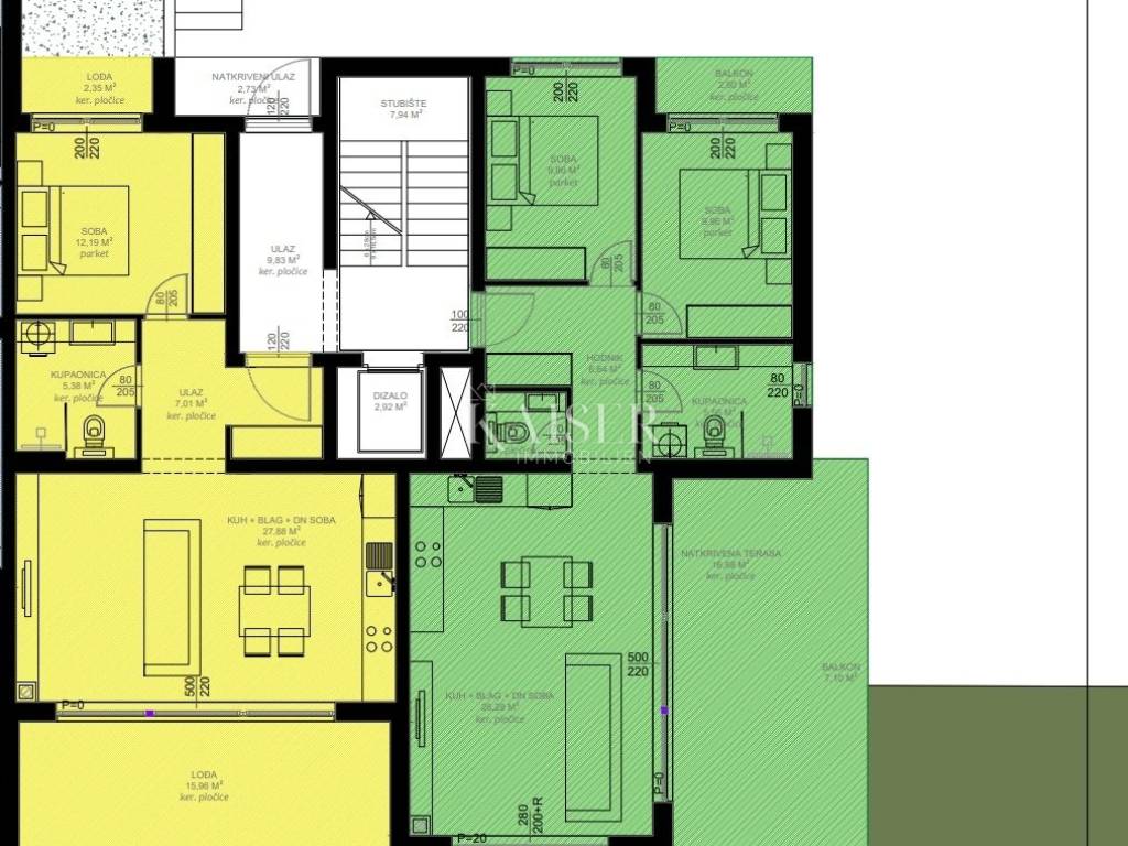 Kaiser Immobilien präsentiert: Sv. Filip i Jakov – Wohnung mit Blick auf das Meer und die Inseln. Zum Verkauf steht eine geräumige und helle Wohnung im Erdgeschoss, gelegen in einem zweistöckigen Gebäude, auf einem erhöhten Teil des Touristenortes Sv. Filip i Jakov, nur 1000 m vom Meer entfernt. Dieser Standort bietet einen Panoramablick auf das Meer und die Inseln, unberührte Natur und vollkommene Ruhe – ohne Staus und Lärm, in unmittelbarer Nähe des Meeres und der Strände und anderer notwendiger Einrichtungen für ungestörten Genuss. Ausgestattet ist die Wohnung mit hochwertigem Echtholzparkett, glänzender Keramik in Top-Qualität sowie Fußbodenheizung und einer Lüftungs- und Klimaanlage in jedem Raum. Die Außenschreinereiarbeiten bestehen aus großzügigen Glaswänden für eine ungehinderte Aussicht sowie Schutz vor äußeren Einflüssen. Der Verkäufer bietet die Möglichkeit, maßgeschneiderte Möbel zu bestellen und anzufertigen. Der Bau wird im Mai 2025 fertiggestellt und bezugsfertig sein. Wohnungsfläche: 66,19 m² + zugehöriger Inhalt – gesamt 70,80 m² Raumaufteilung: Flur – 7,01 m² Schlafzimmer – 12,19 m² Badezimmer – 5,38 m² Wohnzimmer + Küche + Esszimmer – 27,88 m² Loggia – 13,73 m² (genießen Sie die Aussicht!) Zugehöriger Inhalt: Parkplatz – 2,50 m² Garten – 2,20 m² Außenlager Lage: Ruhige und attraktive Gegend von Sv. Filip i Jakov mit Panoramablick auf das Meer und die Inseln. In der Nähe unberührter Natur und Wälder. Entfernung vom Meer: nur 1000 m. In der Nähe des Stadtzentrums, der Strände und aller notwendigen Annehmlichkeiten. Die Wohnung ist ideal für einen Urlaub, aber auch als Investition für die touristische Vermietung. Sveti Filip i Jakov ist eine charmante, kleine Küstenstadt an der Adriaküste, die für ihre wunderschönen Strände, das kristallklare Meer und das mediterrane Ambiente bekannt ist. Es liegt in der Nähe von Biograd na Moru und ist ein idealer Ort für ein ruhiges Leben oder einen Urlaub. Entfernungen: Autobahn A1 (Ausfahrt Benkovac) – 20 km, Flughafen Zadar – 25 km, Nationalparks: - Kornati (Bootsausflüge von der Stadt aus) - Krka – 50 km - Paklenica – 60 km - Vrana-See (Naturpark) – 10 km. Dank der hervorragenden Anbindung und der Nähe zu Naturschönheiten ist Sveti Filip i Jakov die ideale Kombination aus Urlaub und Abenteuer! Für alle Informationen und Besichtigungen kontaktieren Sie uns noch heute. Tel.: 00385992510230 Email: marijana.papic@kaiser-immobilien.hr